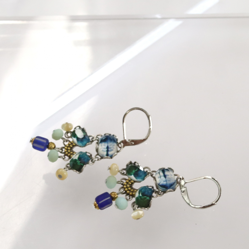 透き通った水の静けさを思い起こさせる、Fresh Watersという名のシリーズ。落ち着いたブルーの色合いが美しいピアスです。