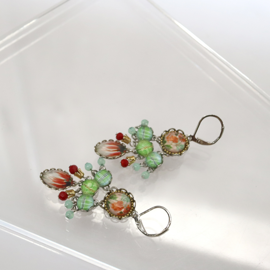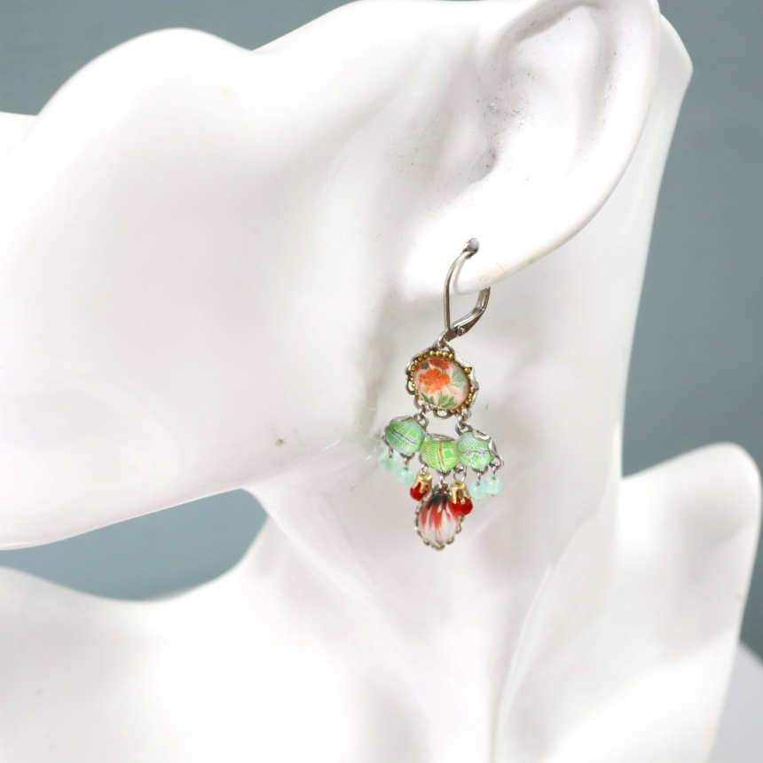 繊細な花柄と鮮やかな色彩が特徴の、Flower Gardenという名のシリーズ。まるでお花のつぼみがついているようなかわいらしいデザインのピアスです。