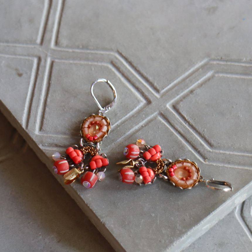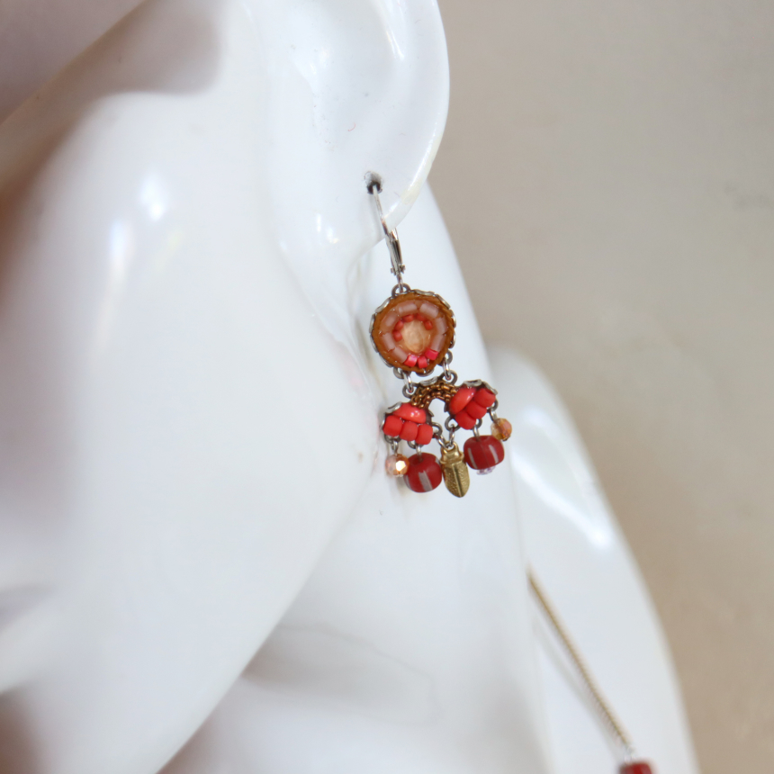 深みあるマットな質感のレッドグラデーションに、ゴールドパーツが揺れる、Radical Redという名のシリーズ。大胆で情熱的なデザインのピアスです。