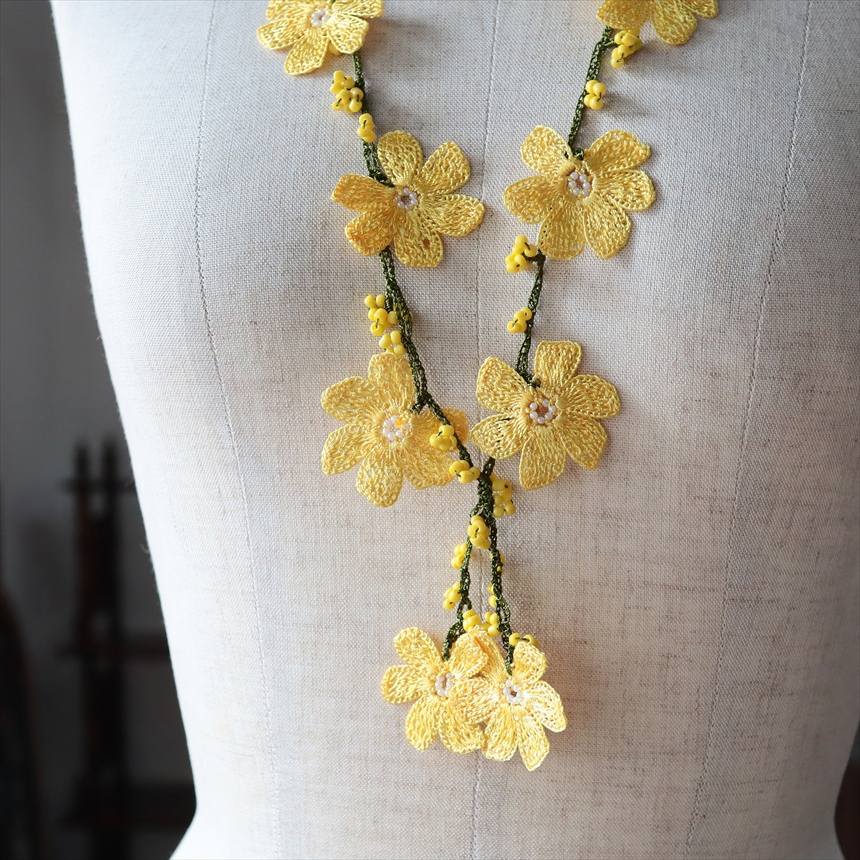 オヤ トゥオヤ ネックレス トルコのレース編み パパテヤ イエロー