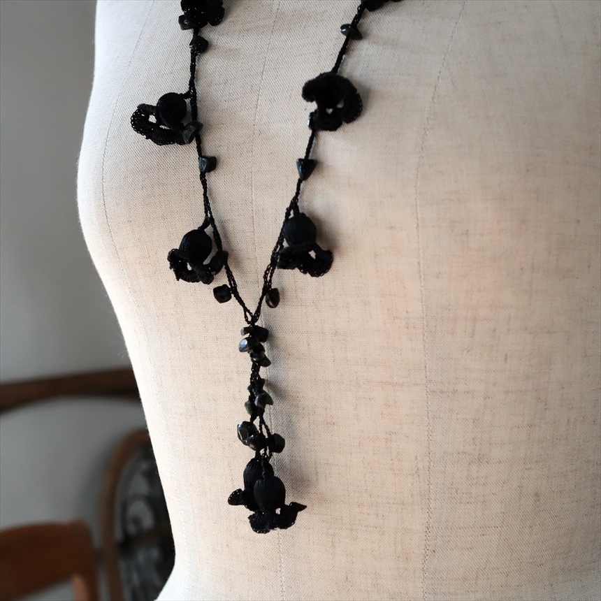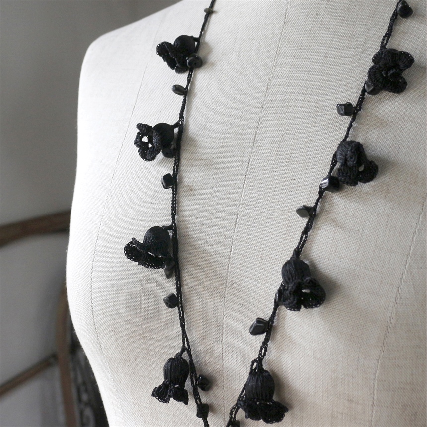 トルコのレース編み「オヤ」ネックレス すずらん ブラック