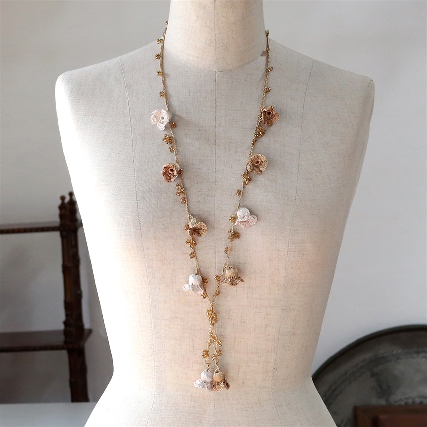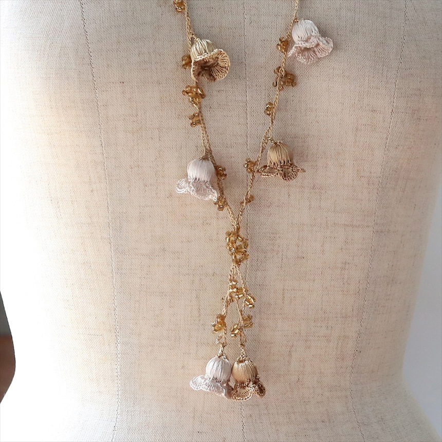 トルコのレース編み「オヤ」ネックレス すずらん ベージュ