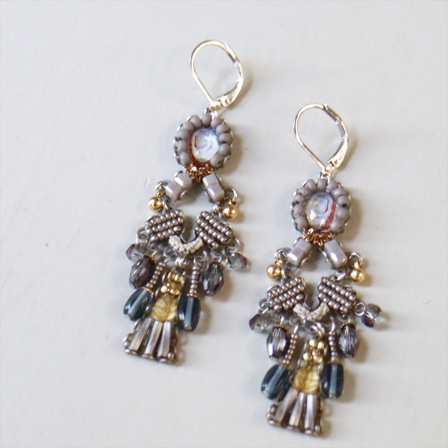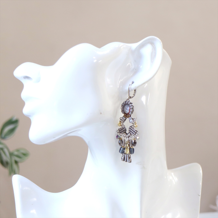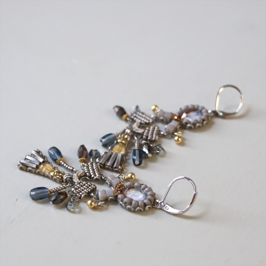 淡い銀白色のロマンティックな雰囲気のShivering Moonlightという名のシリーズ。繊細なビーズパーツが揺れる優し気な印象のピアスです。