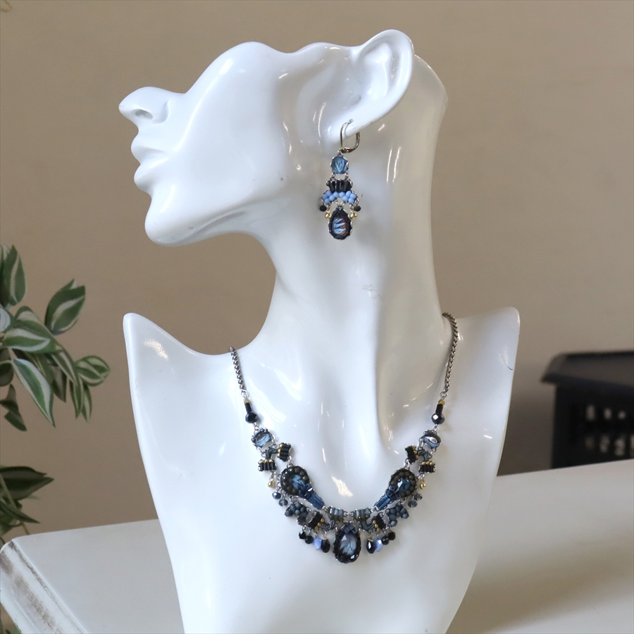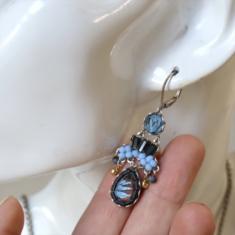 深い藍色の静かなる美しい孤高の世界観のIndigo Summitsという名のシリーズ。細やかなビーズで美しいブルーグラデーションが魅力のピアスです。