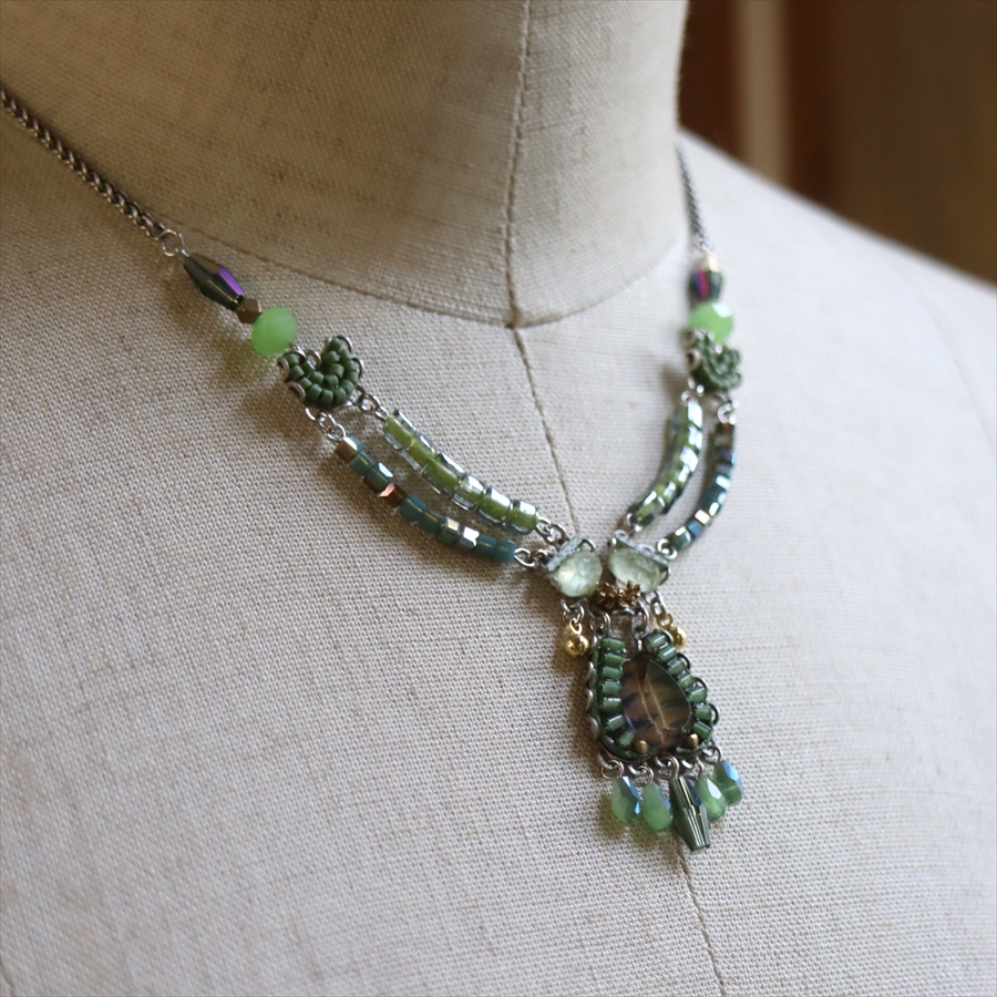 摘みたての緑の清涼感を表現したような、Eucalyptus(ユーカリプタス)という名のシリーズのネックレスです。