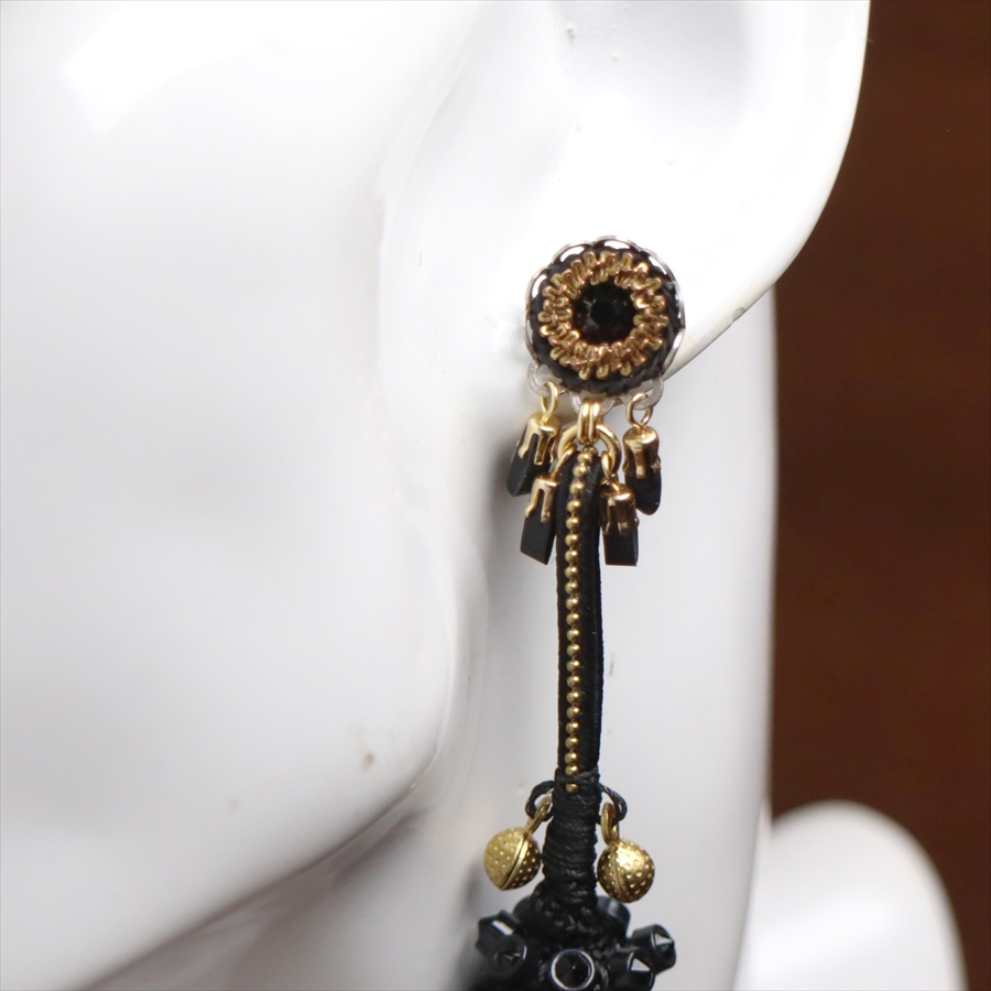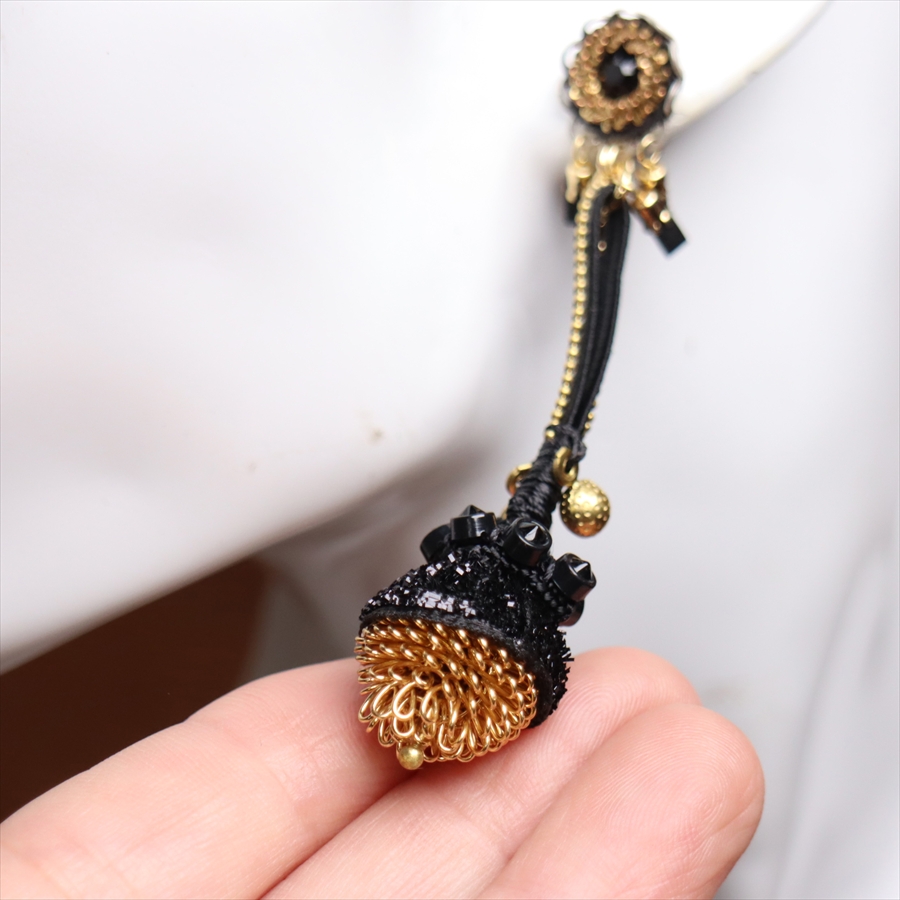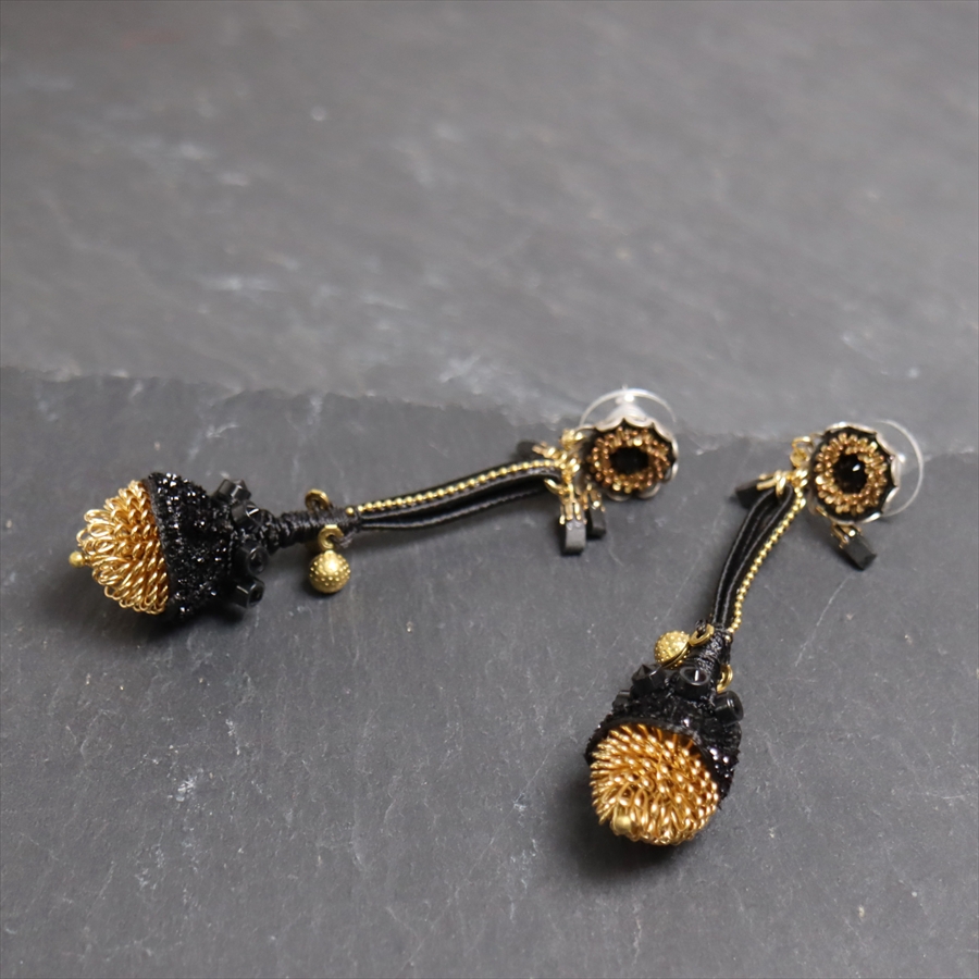 きらめくブラックビーズと艶をおさえたゴールドの融合が印象的な、Gilded Blackという名のシリーズ。しずくのように耳元でしなやかに揺れるピアスです。