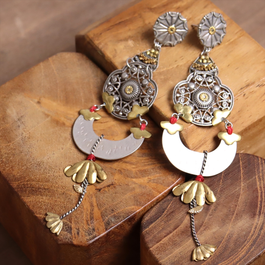 無機質なシルバーに、花のような儚さを宿したMetal Bloomという名のシリーズ。繊細なパーツをあしらい、クールな中にも柔らかさを感じさせるピアスです。シンプルなコーディネートに、さりげない個性をプラスします。