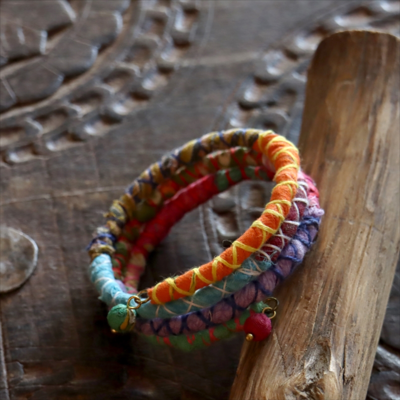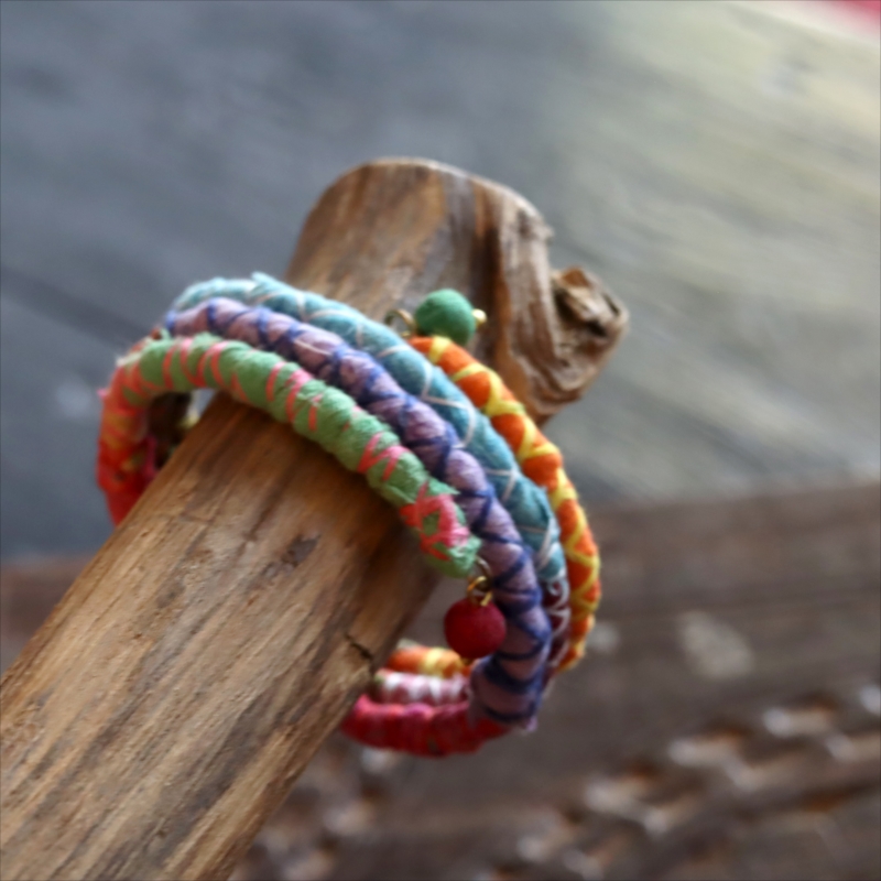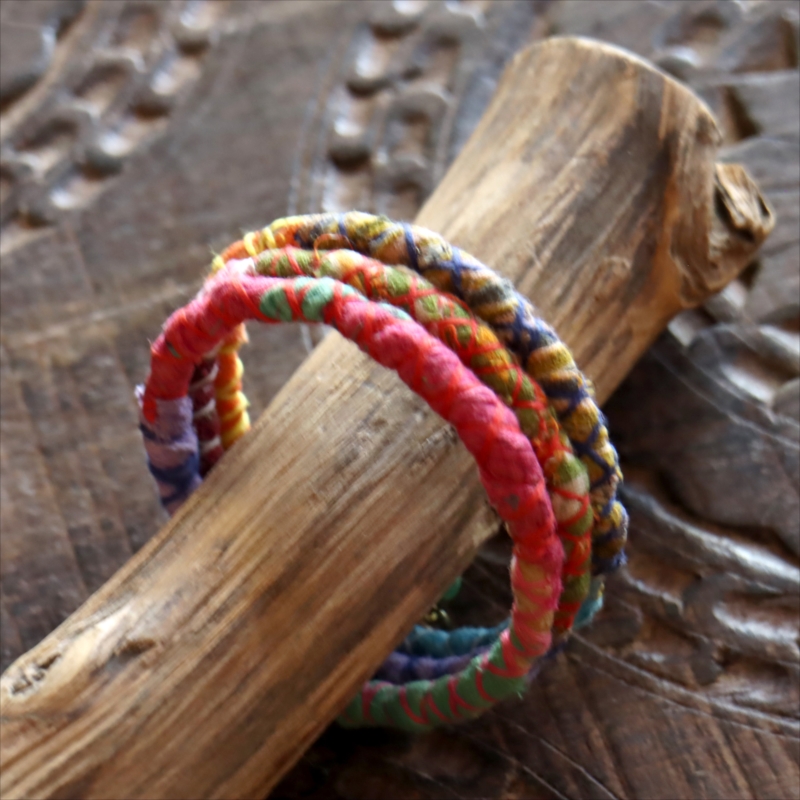 リサイクルサリー スパイラルバングル インド 手作りブレスレット