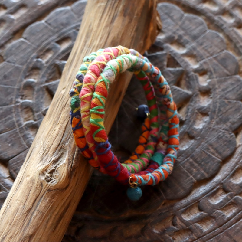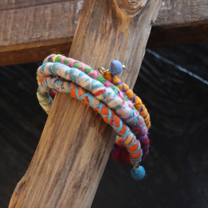 リサイクルサリー スパイラルバングル インド 手作りブレスレット