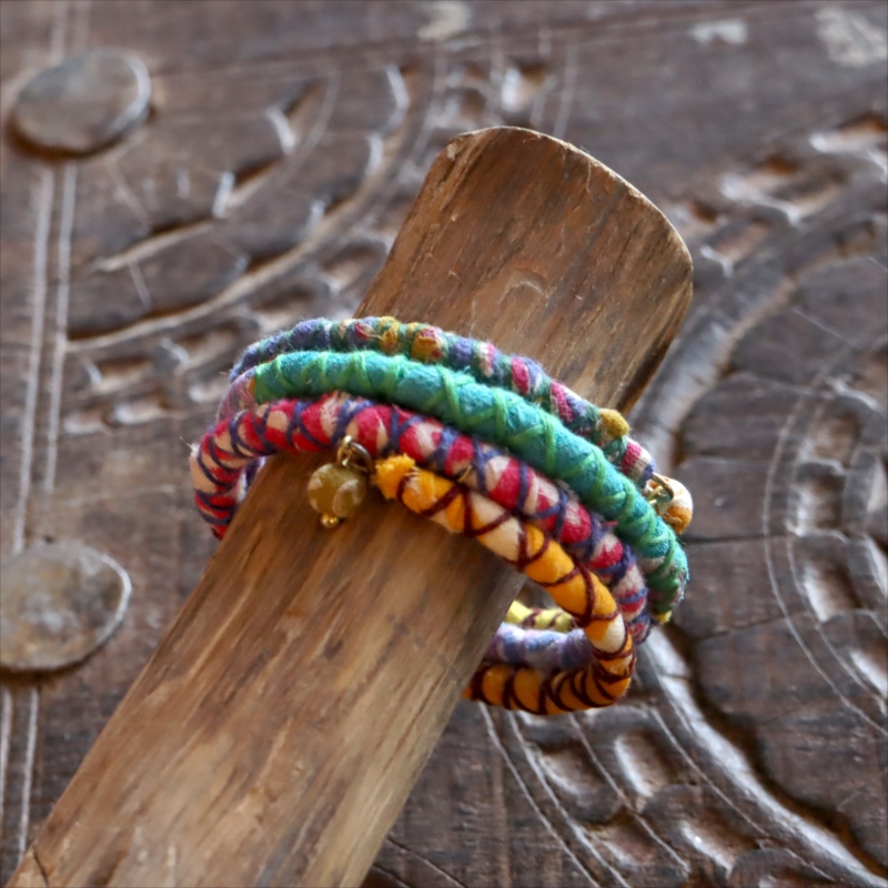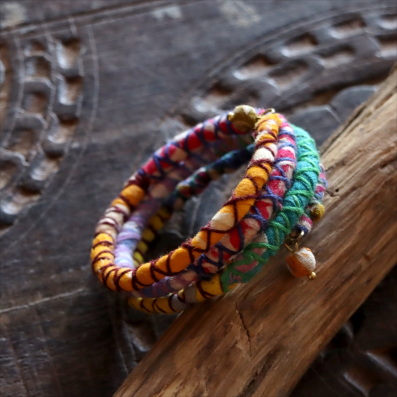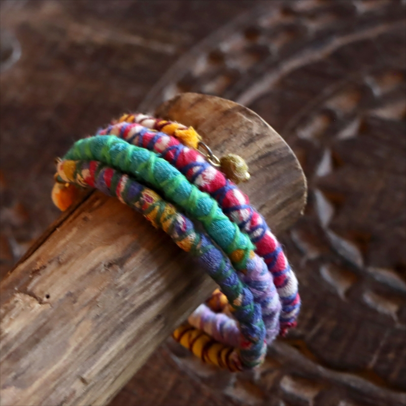 リサイクルサリー スパイラルバングル インド 手作りブレスレット