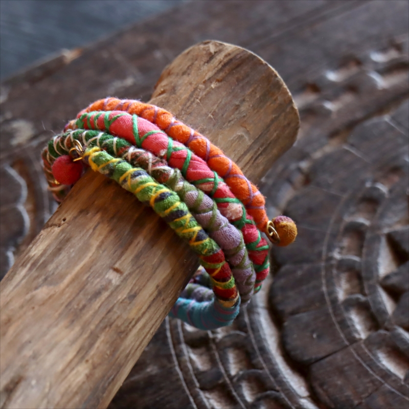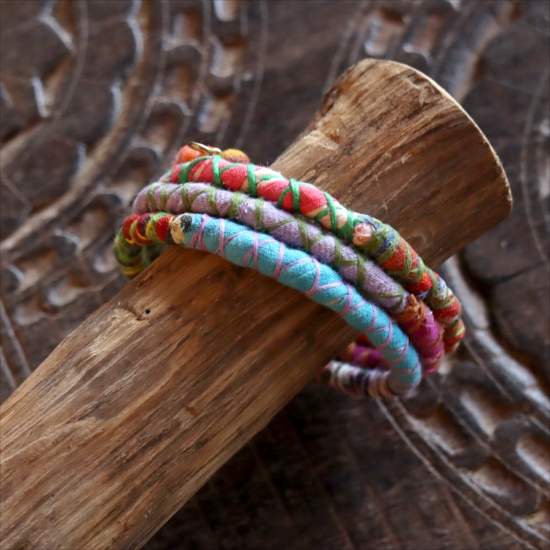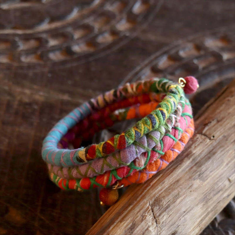リサイクルサリー スパイラルバングル インド 手作りブレスレット