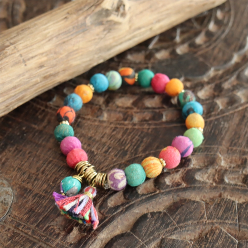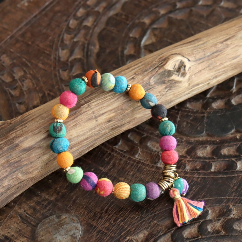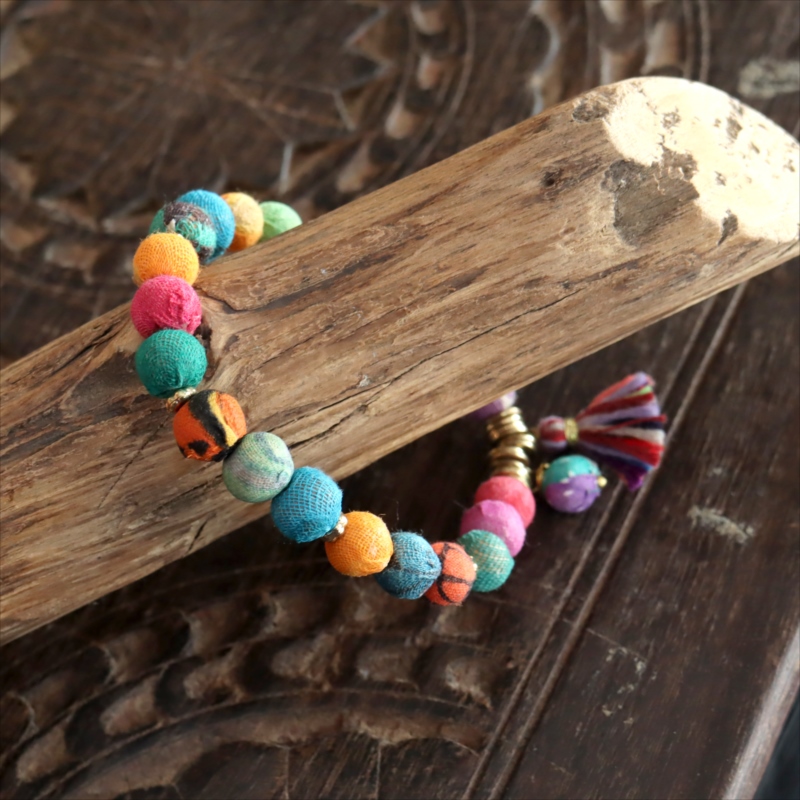 リサイクルサリービーズ ブレスレット 21粒のカラフルビーズ