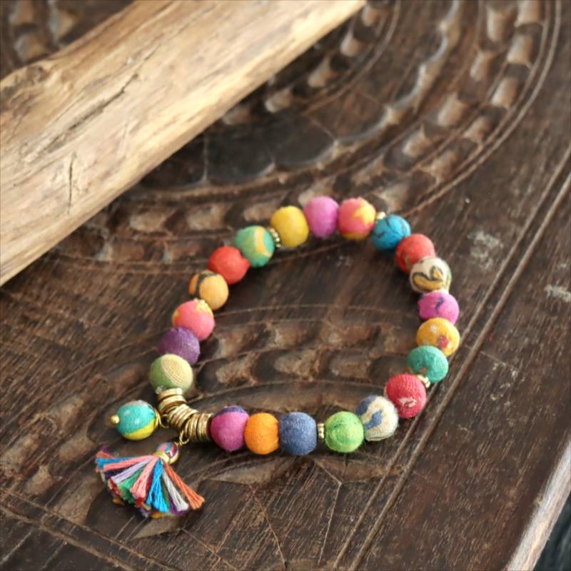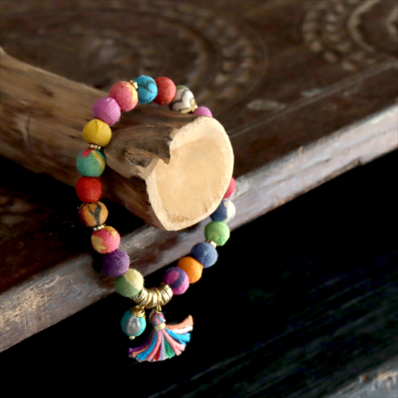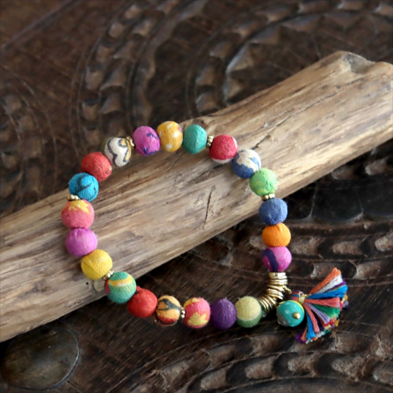 リサイクルサリービーズ ブレスレット 21粒のカラフルビーズ