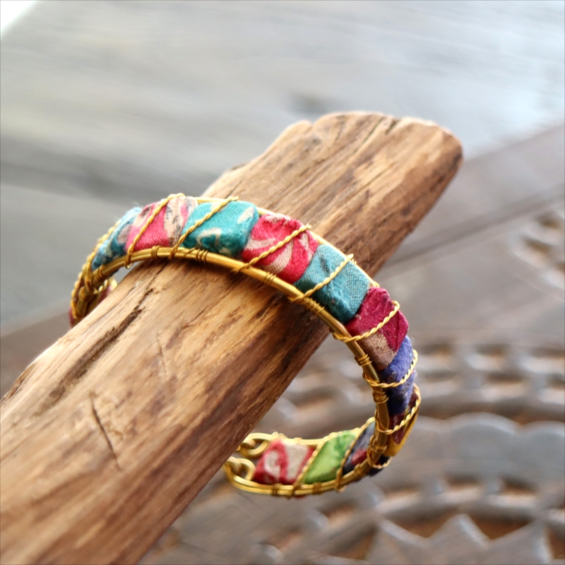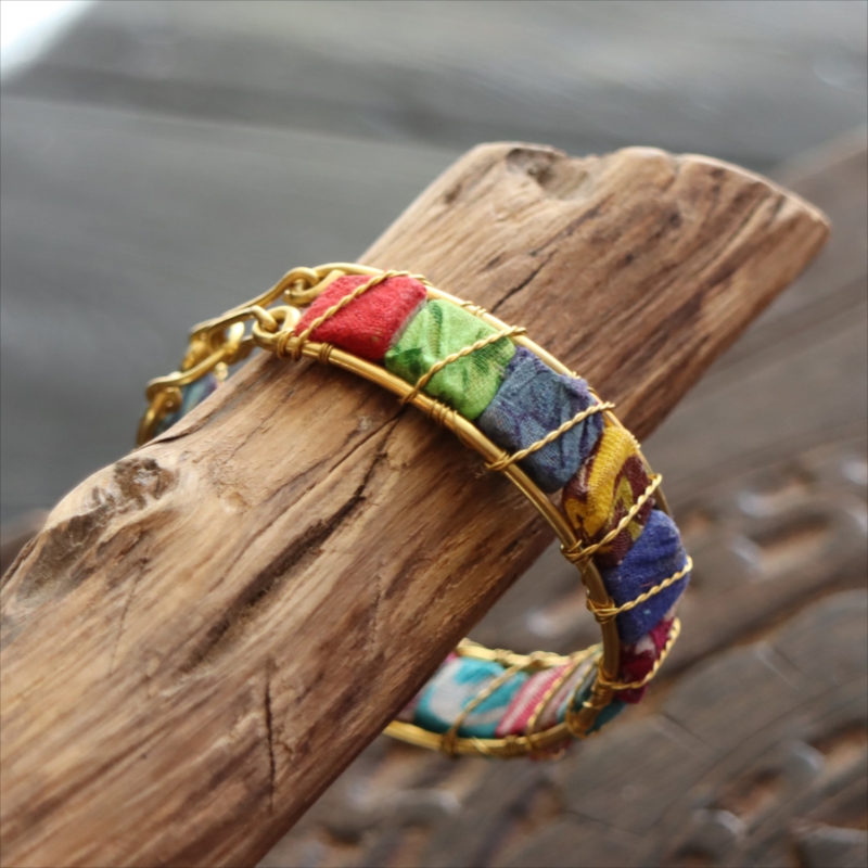 リサイクルサリー バングル 布 クラフトビーズ カラフルな四角いタイル