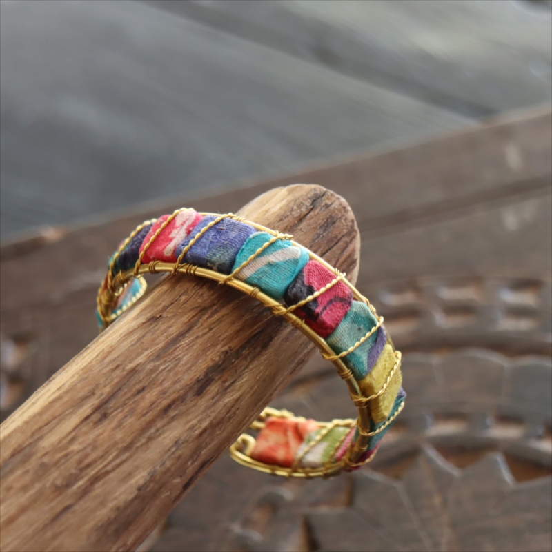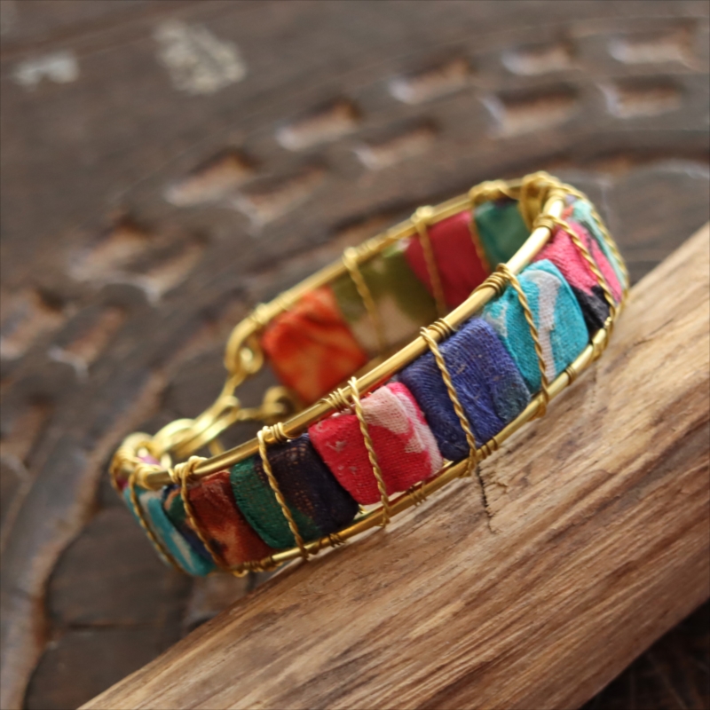 リサイクルサリー バングル 布 クラフトビーズ カラフルな四角いタイル