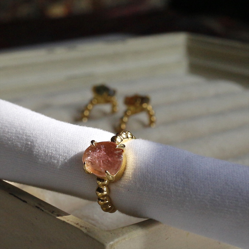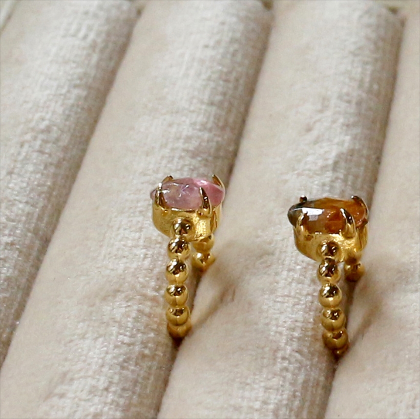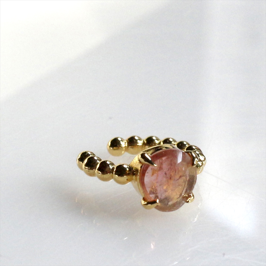 淡いピンクのグラデーションが美しい、ピンクトルマリンのイヤーカフ。ボールチェーン調のゴールドアームが柔らかな印象です。※石の大きさ0.7×0.4cm