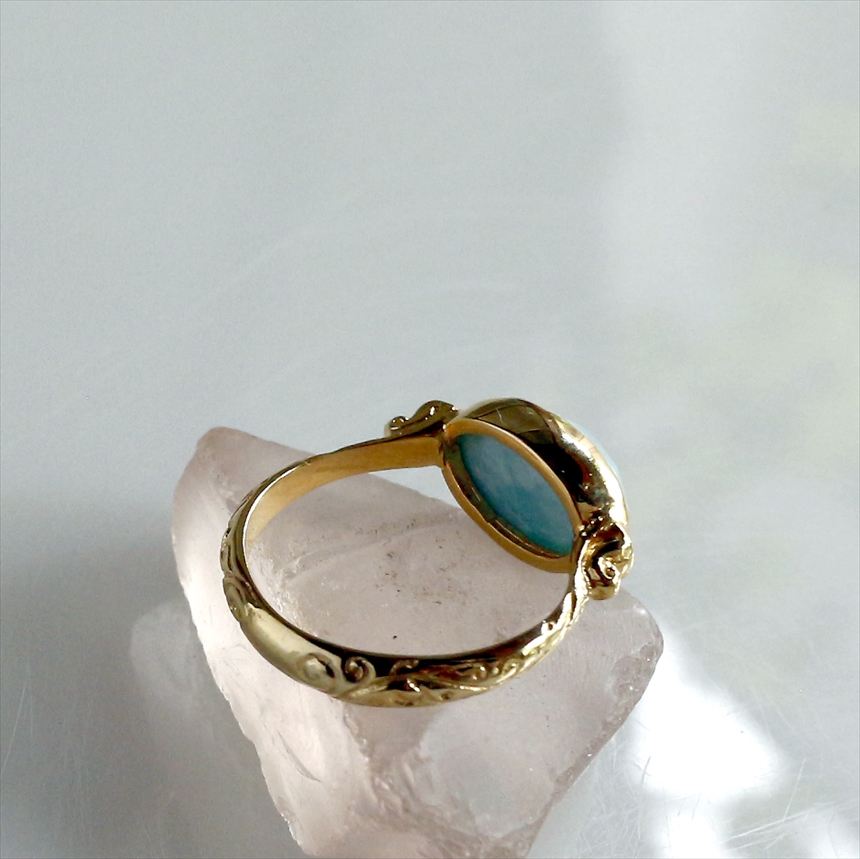 シルバーリング ラリマー オーバル横向き 18KGF 天然石 トルコジュエリー 15号