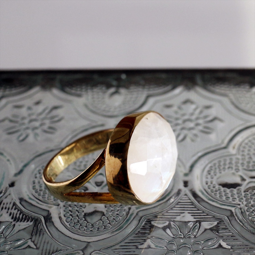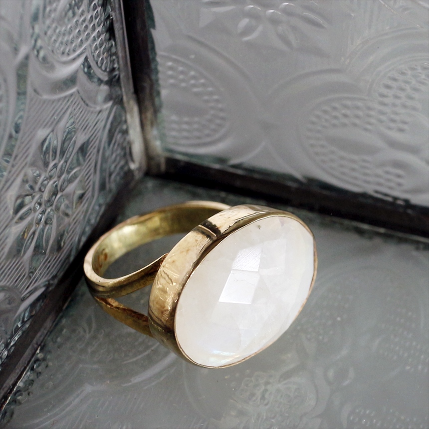 シルバーリング レインボームーンストーン オーバル横向き 大粒 18KGF 天然石 トルコジュエリー