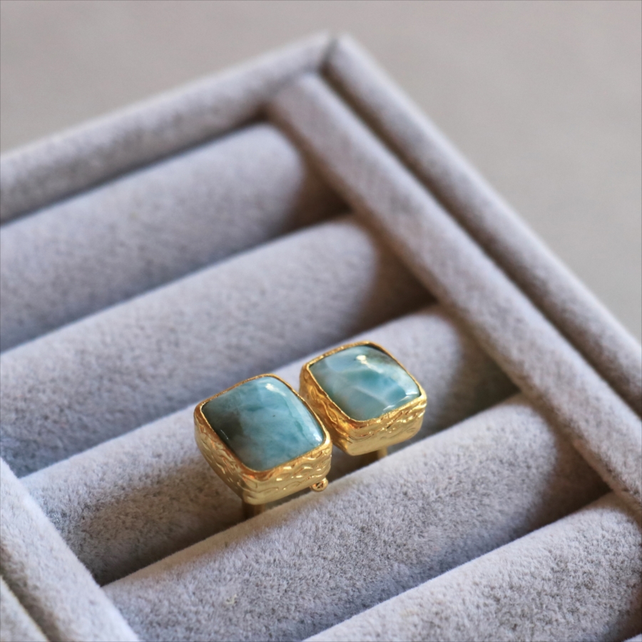 ラリマーダブルリング スクエア アルサメイア トルコジュエリー カラーストーン