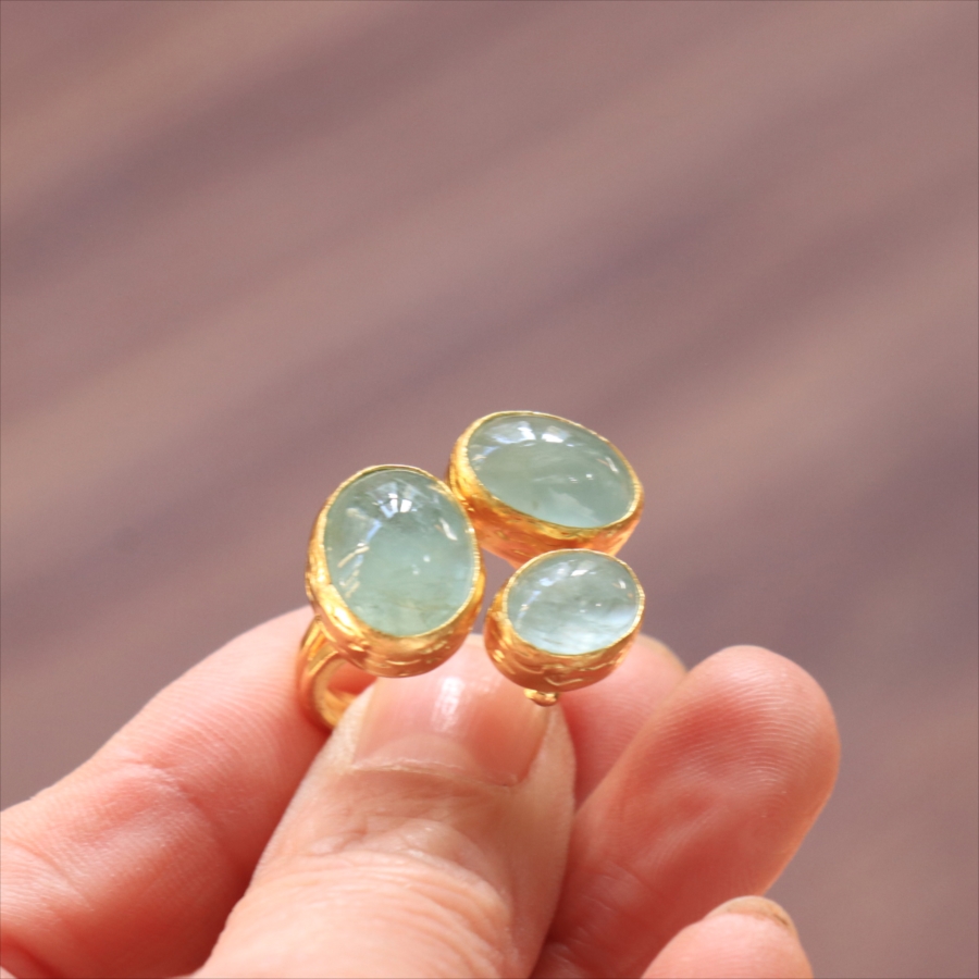 アクアマリン リング 3ストーン アルサメイア トルコジュエリー 3つの石