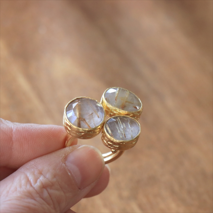 ルチルクォーツ リング 3ストーン アルサメイア トルコジュエリー 3つの石