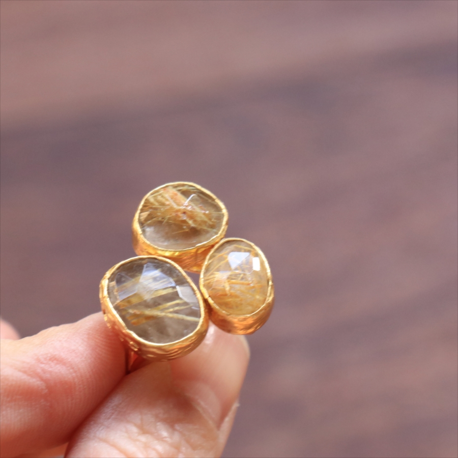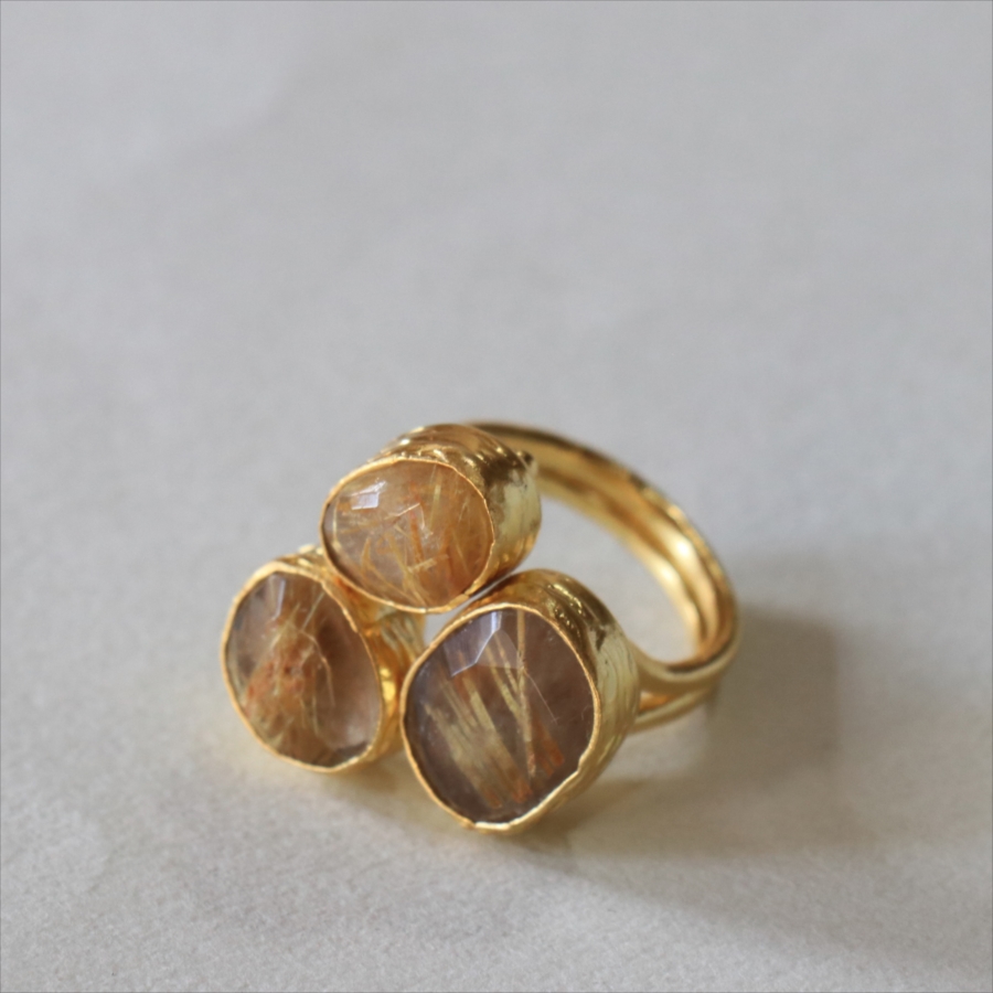 ルチルクォーツ リング 3ストーン アルサメイア トルコジュエリー 3つの石