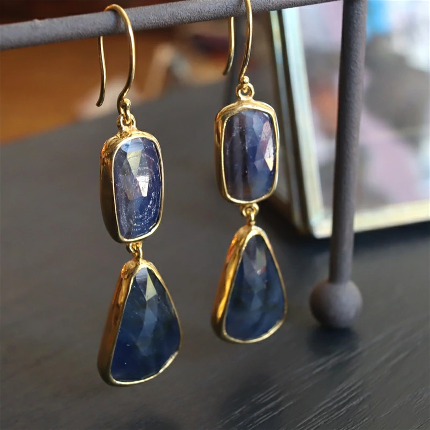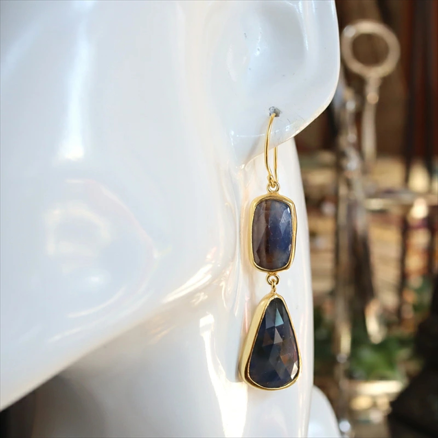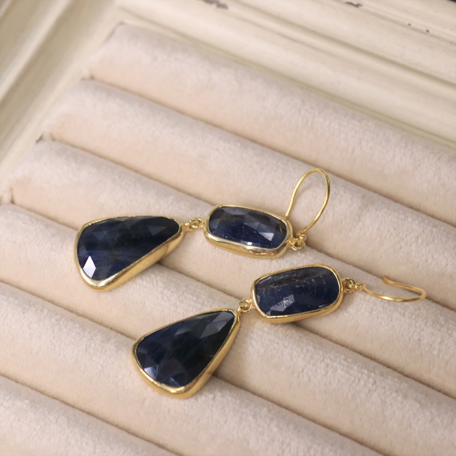 ブルーサファイア 2粒のピアス シルバー925(18KGF) 【現品】sapphire & Silver earrings