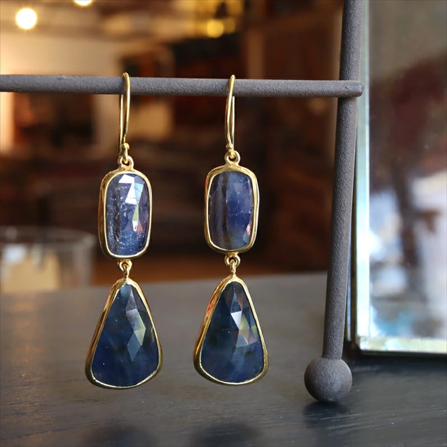 サファイアは光の当たり方によって様々に美しく変化して見えます。サファイアの産地はインド、デザインと制作はイスタンブル@トルコです。