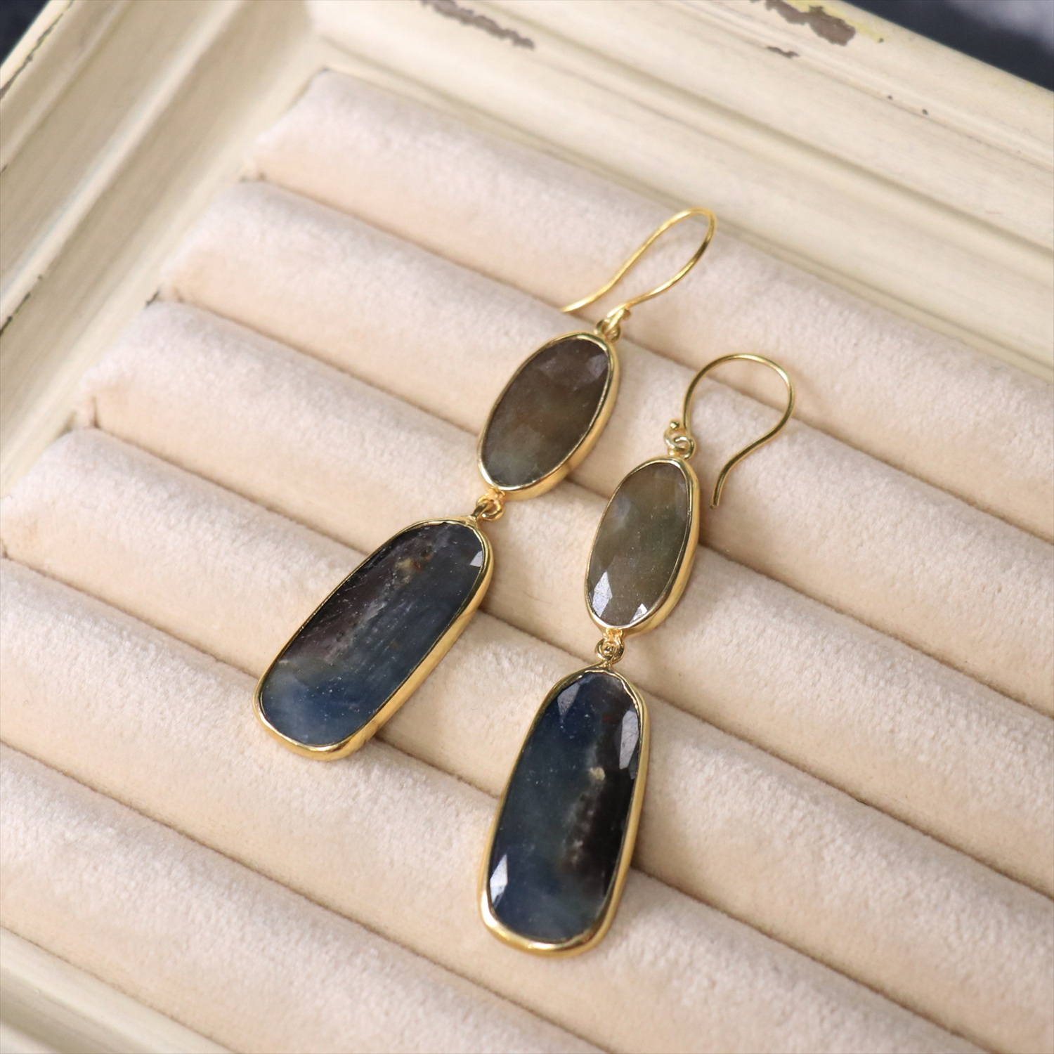 ブルーサファイア 2粒のピアス シルバー925(18KGF) 【現品】sapphire & Silver earrings