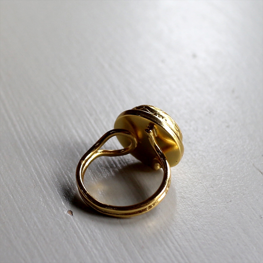 アルサメイア インタリオリング ラウンド グリーンジェイド 天然石22Kゴールドプレーテッド トルコジュエリー