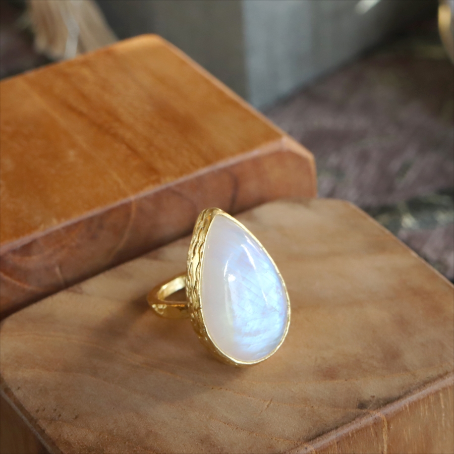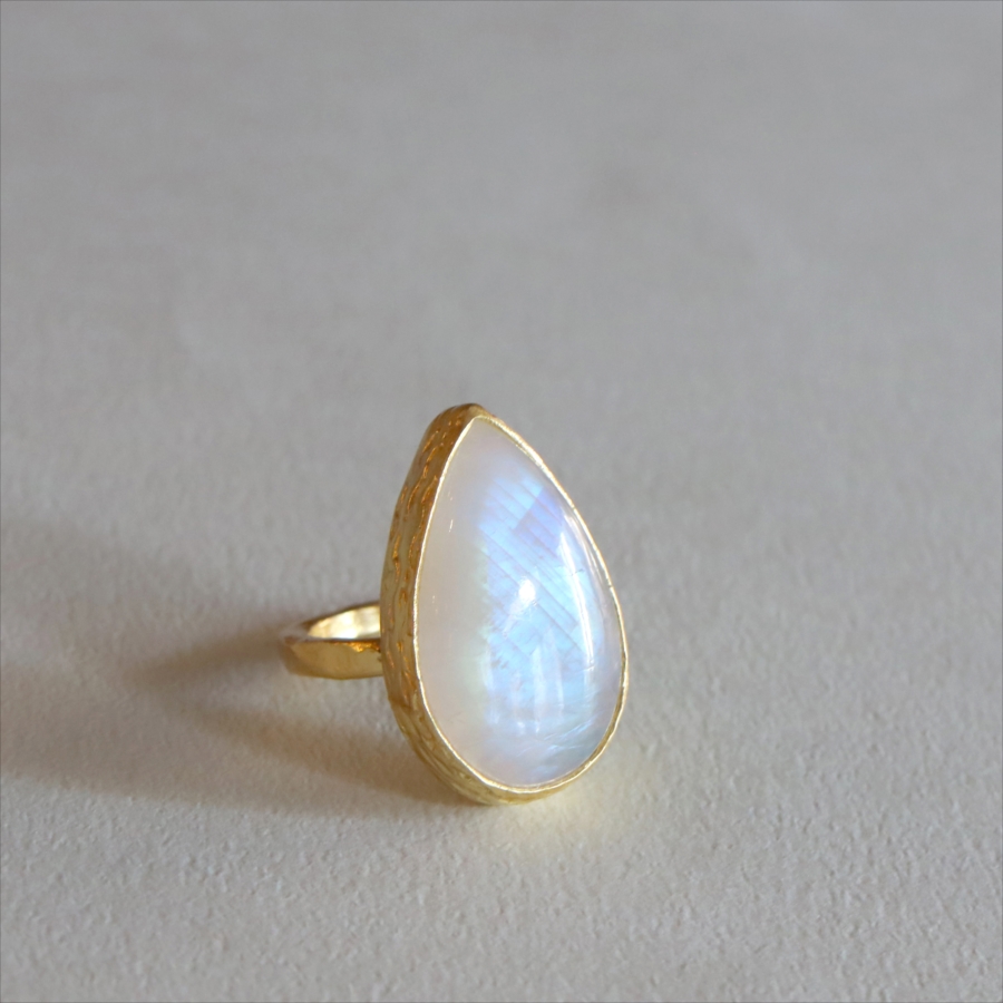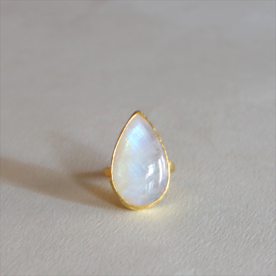 アルサメイア レインボームーンストーン ドロップリング 天然石 22kゴールドプレーテッド トルコジュエリー カラーストーン