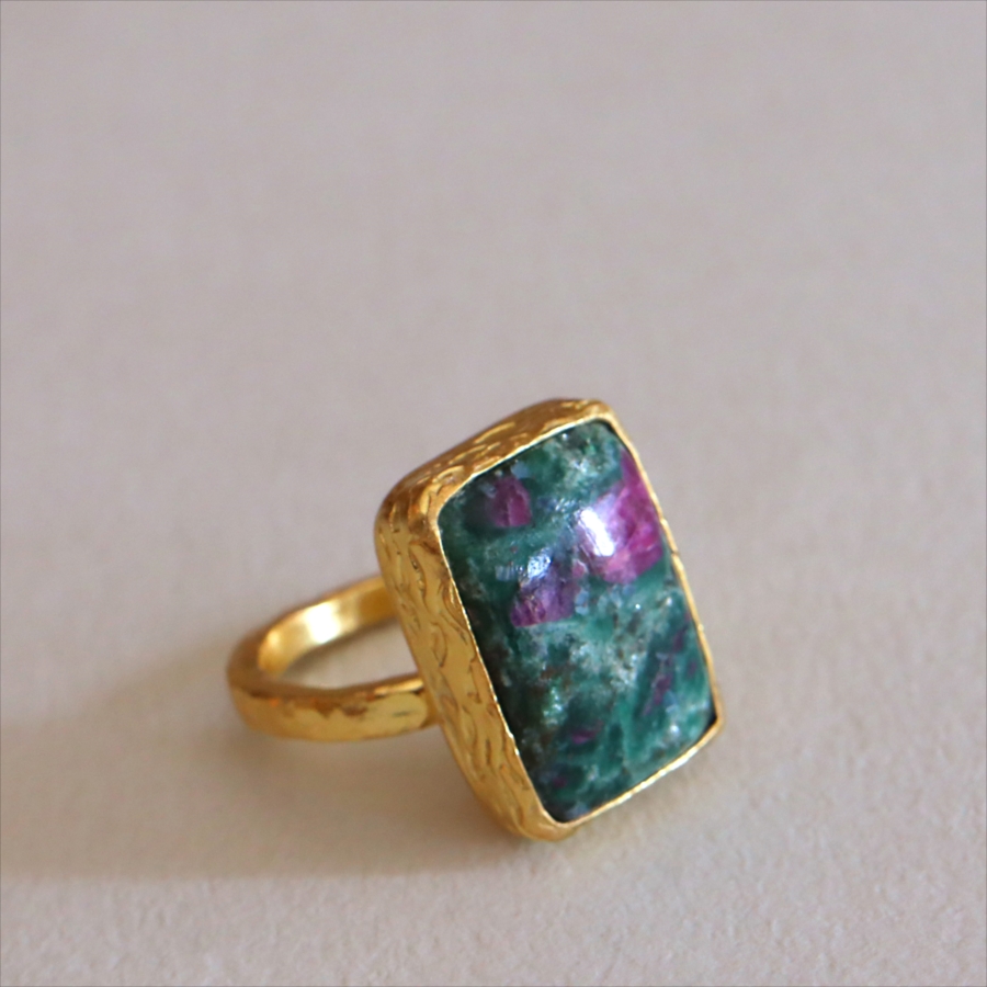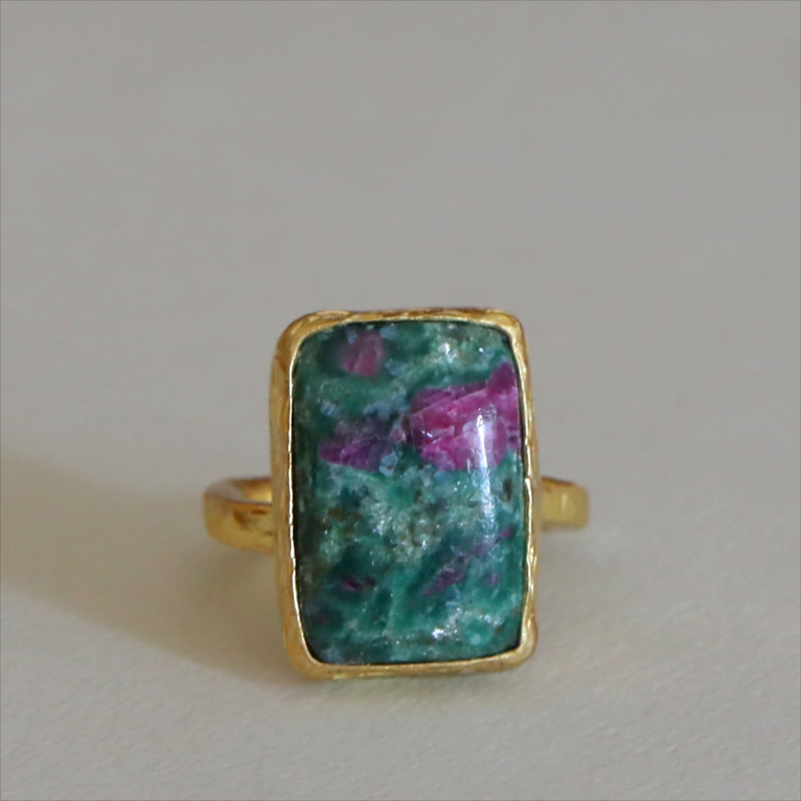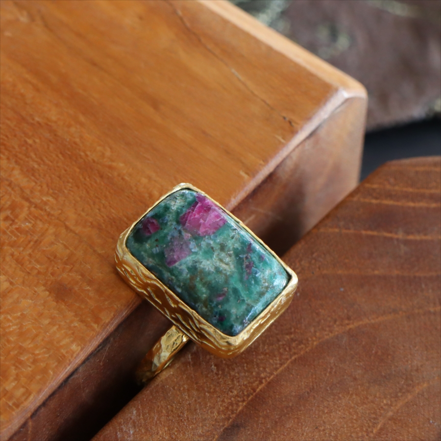 ルビーインゾイサイト リング アルサメイア 天然石 22kゴールドプレーテッド トルコジュエリー カラーストーン