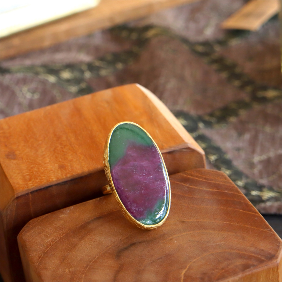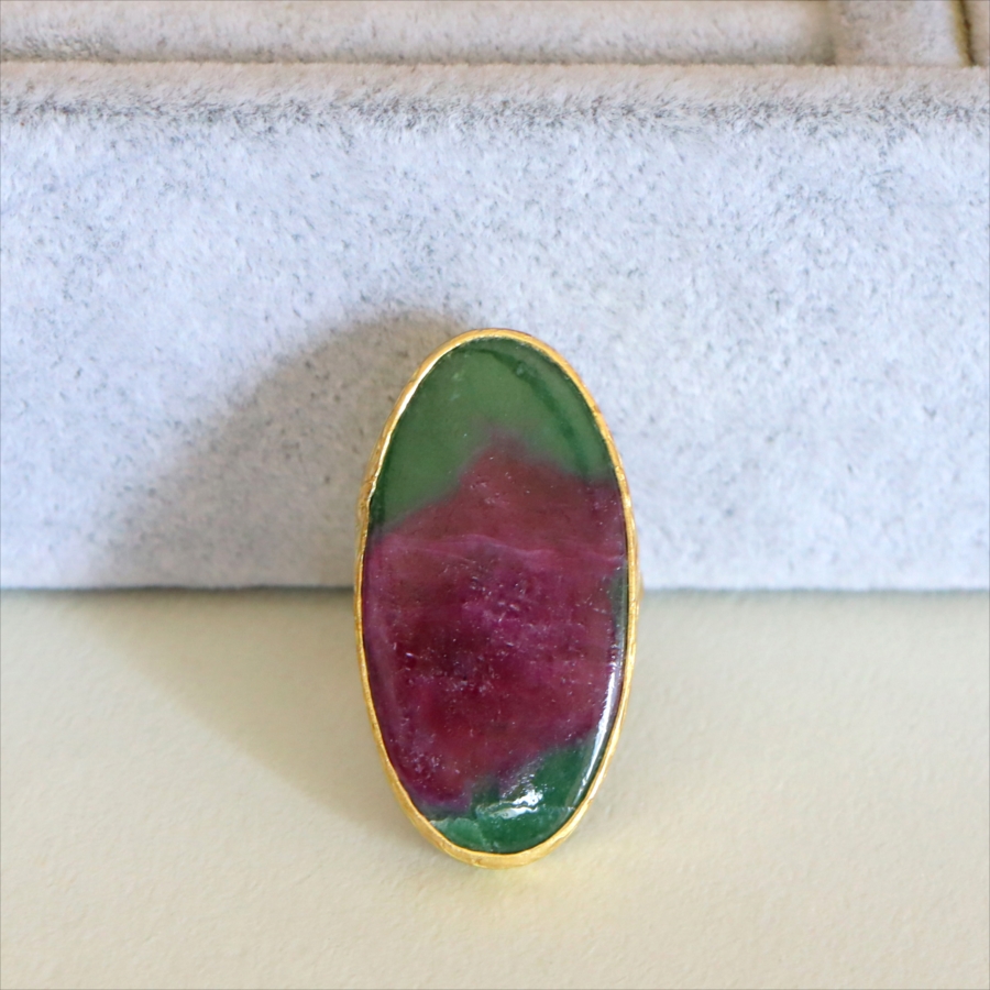 ルビーインゾイサイト リング アルサメイア 天然石 22kゴールドプレーテッド トルコジュエリー カラーストーン