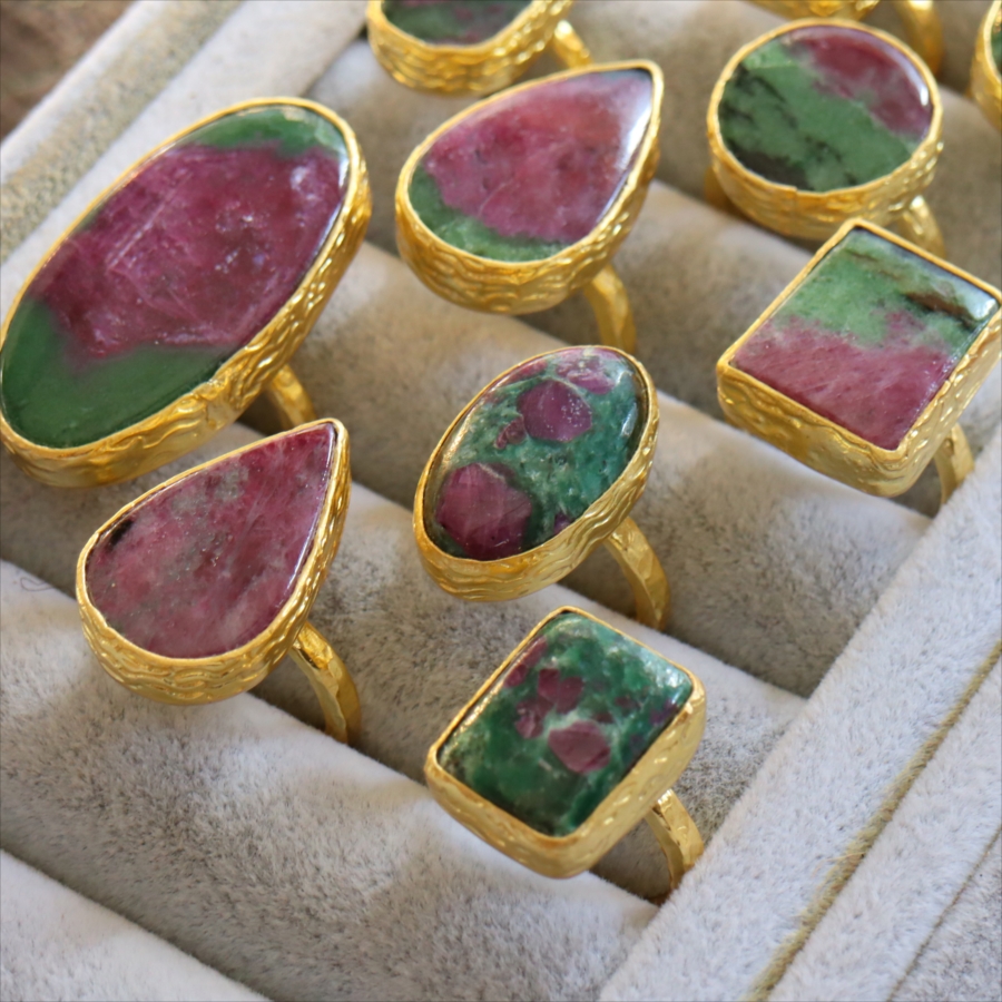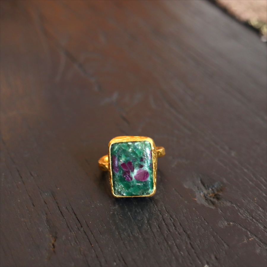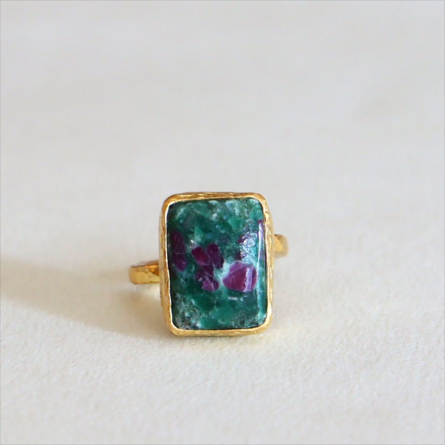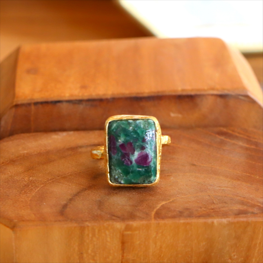 ルビーインゾイサイト リング アルサメイア 天然石 22kゴールドプレーテッド トルコジュエリー カラーストーン