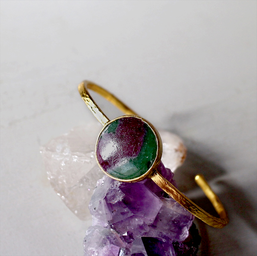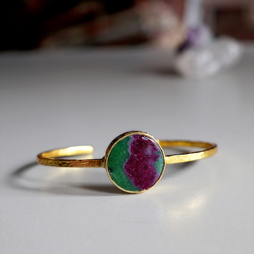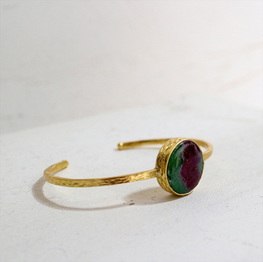 アルサメイア ルビーインゾイサイト ビッグストーンバングル 大粒 天然石22KGP トルコジュエリー ラウンド