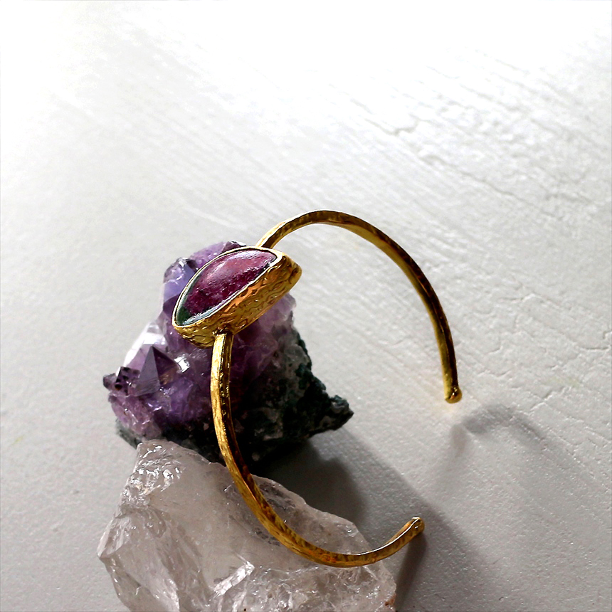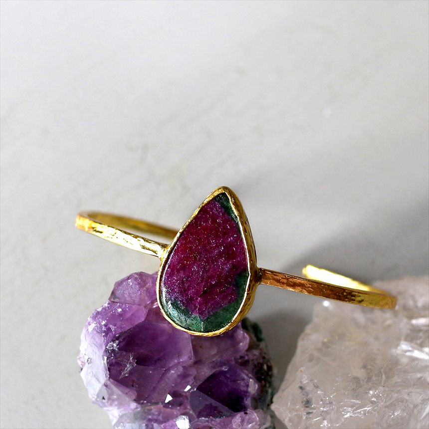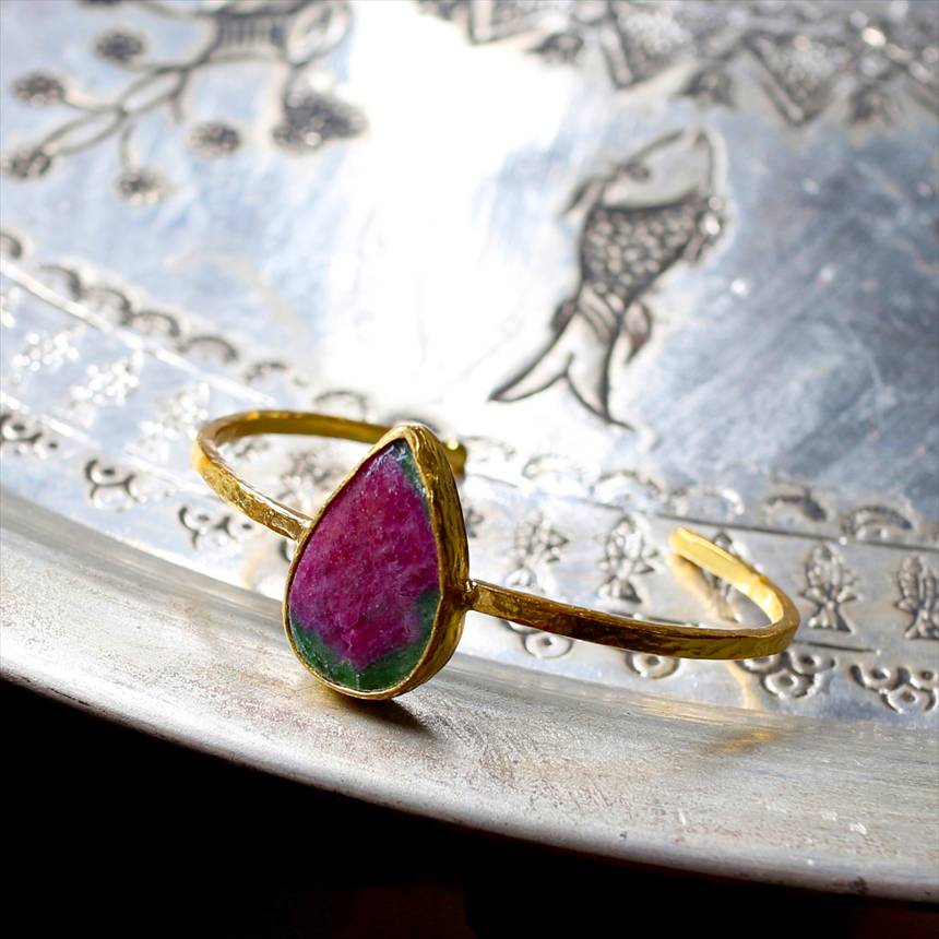 アルサメイア ルビーインゾイサイト ビッグストーンバングル 大粒 天然石22KGP トルコジュエリードロップ