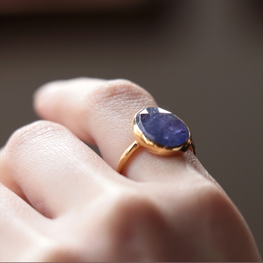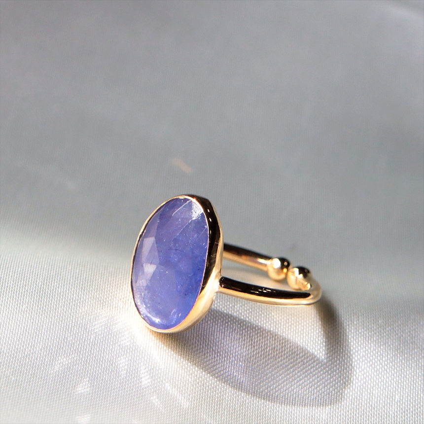 タンザナイト シルバーリング オーバル 縦長 18KGF 天然石 トルコジュエリー カラーストーン