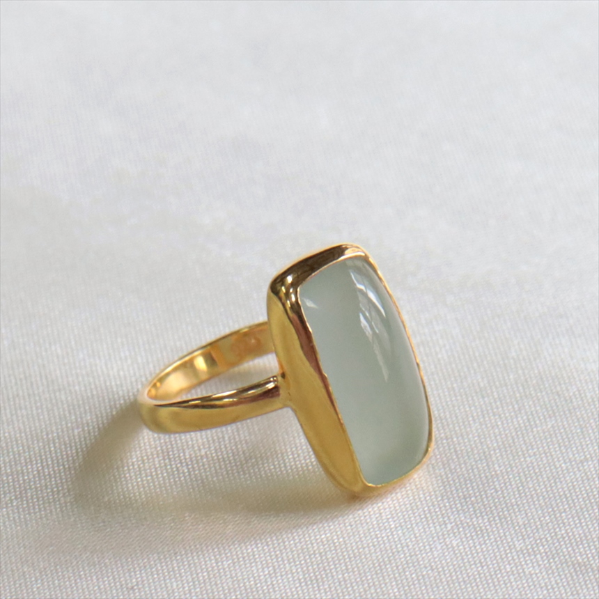 アクアマリン シルバーリング レクタングルカボション 大粒 18KGF 天然石 トルコジュエリー カラーストーン