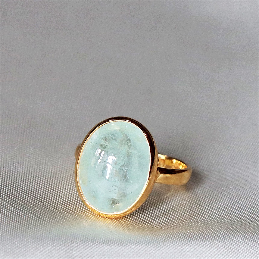 アクアマリン シルバーリング オーバルカボション 18KGF 天然石 トルコジュエリー カラーストーン