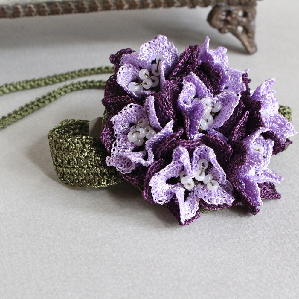 トルコの伝統的な手芸「オヤ」をモチーフにして、手編みで作られたブレスレッドです。
