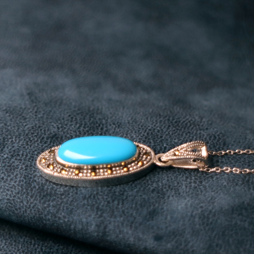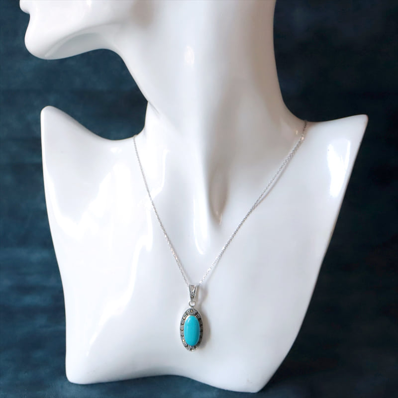 シルバーペンダント トルコ石×マルカジット オーバル Turkish Silver Jewelry ネックレス マーカサイト ターコイズ