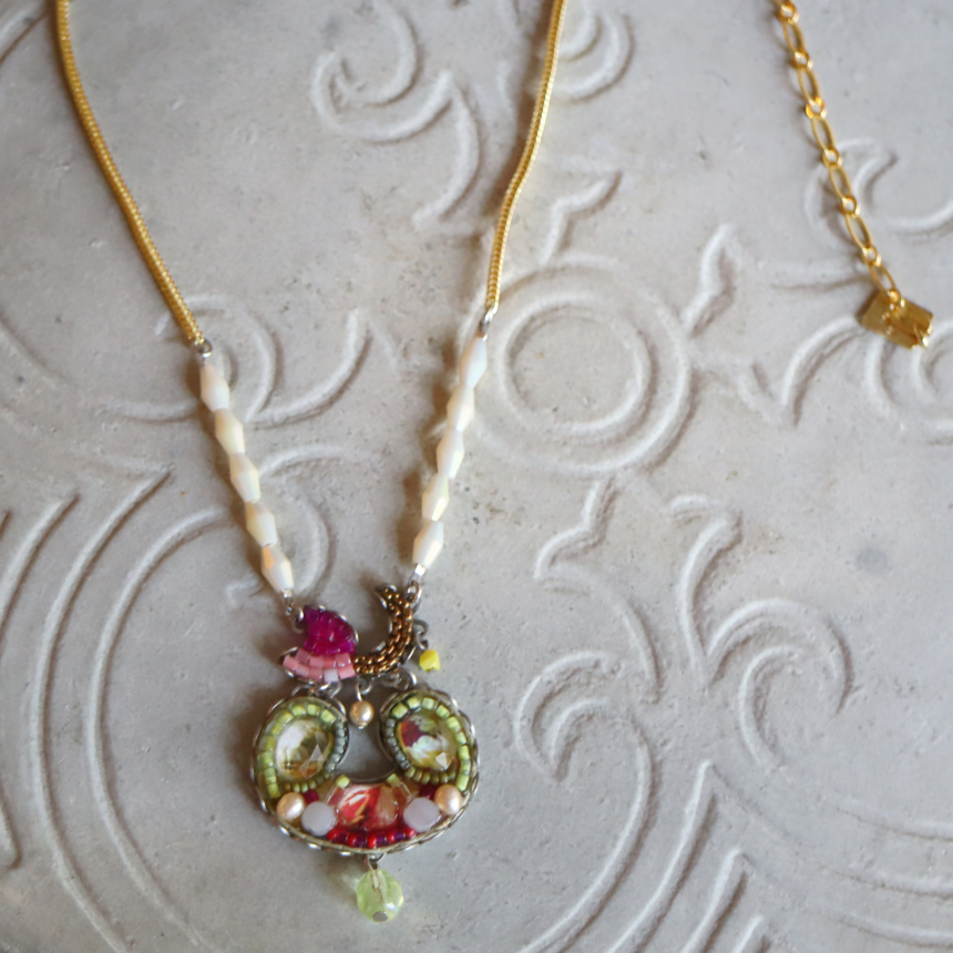 明るい色合いに遊び心あるパーツの組み合わせが魅力の、Lemonadeという名の通り、甘酸っぱい印象のシリーズ。淡い黄色系のビーズが揺れ、乳白色のパールとの組み合わせは、爽やかで清涼感があり、上品さと可愛らしさを感じるデザインのネックレスです。