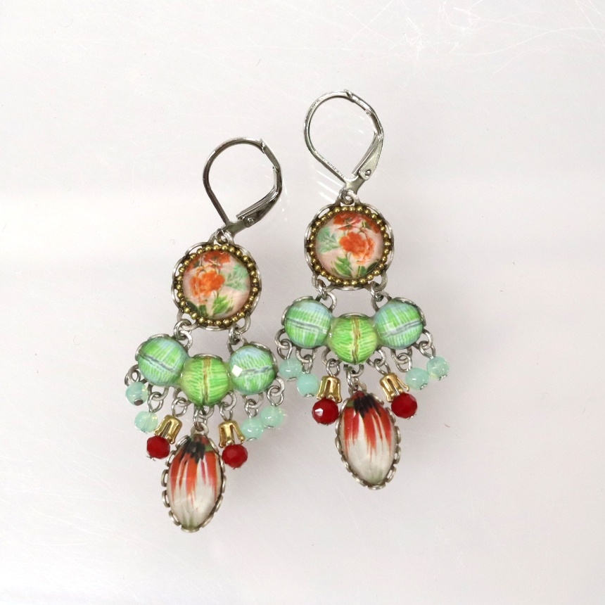 繊細な花柄と鮮やかな色彩が特徴の、Flower Gardenという名のシリーズ。まるでお花のつぼみがついているようなかわいらしいデザインのピアスです。