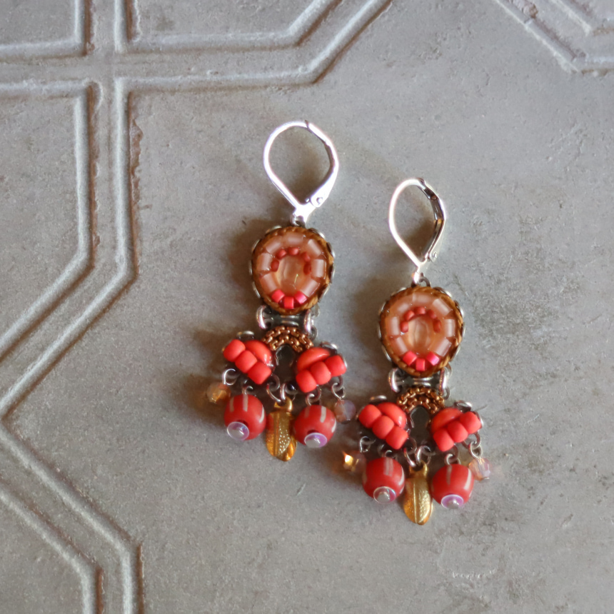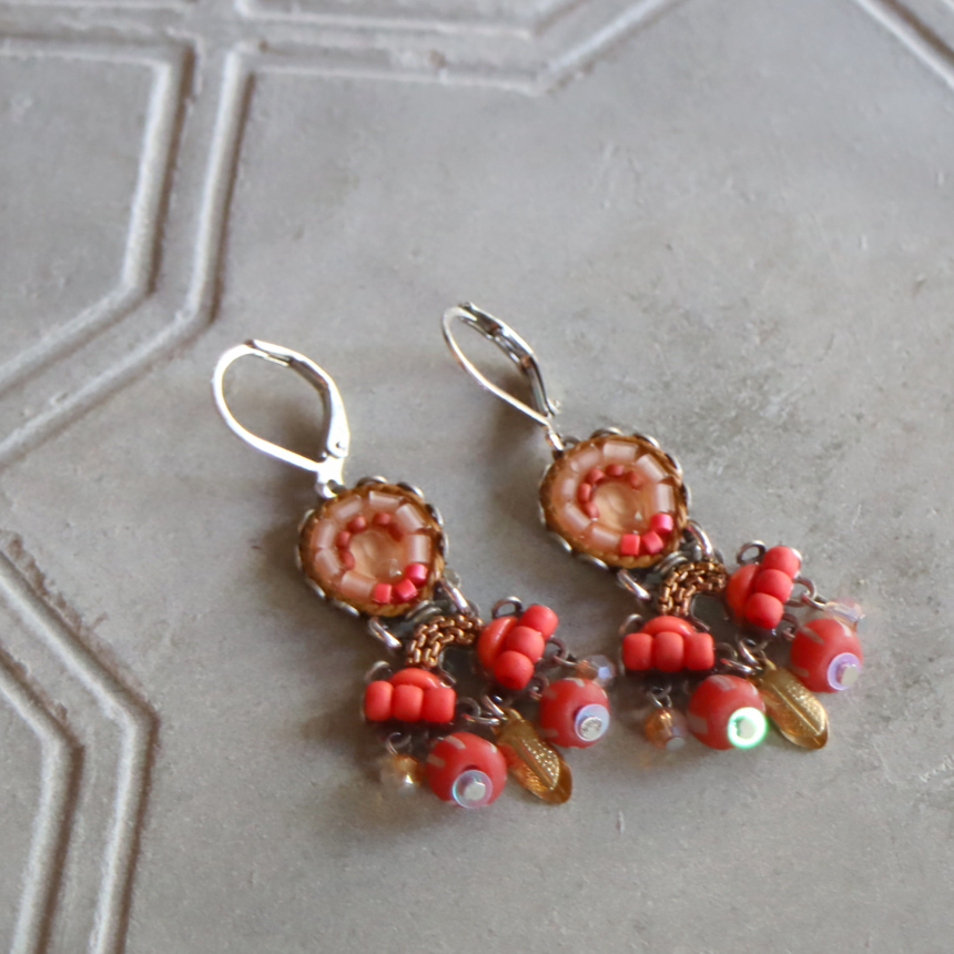 深みあるマットな質感のレッドグラデーションに、ゴールドパーツが揺れる、Radical Redという名のシリーズ。大胆で情熱的なデザインのピアスです。
