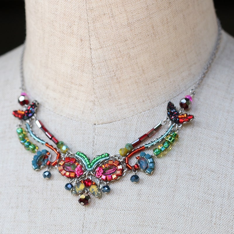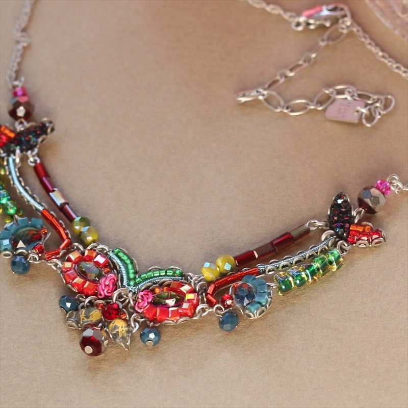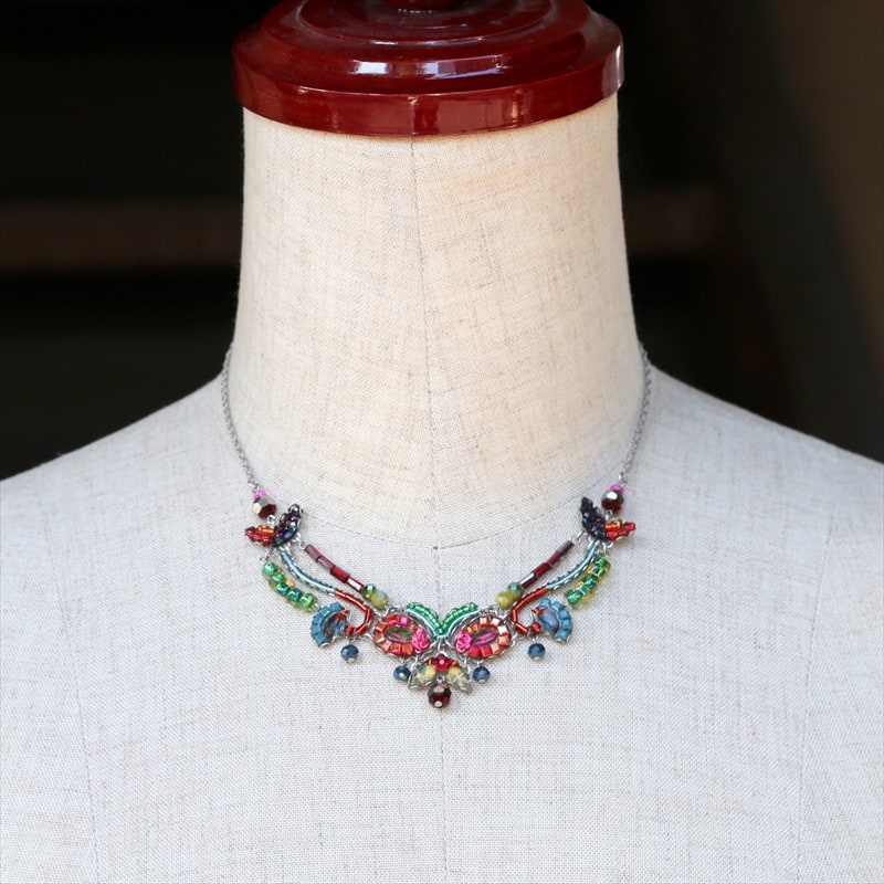 ローワンというバラ科の植物の名のついたシリーズ。赤く染まる果実が散りばめられたような鮮やかでかわいらしいネックレスです。