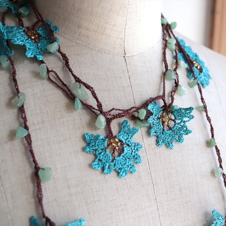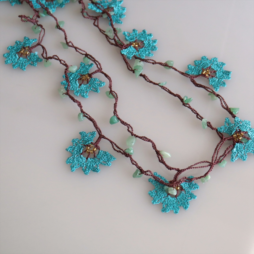 オヤ ラリエット トルコ伝統のレース編み小花モチーフ ターコイズブルー