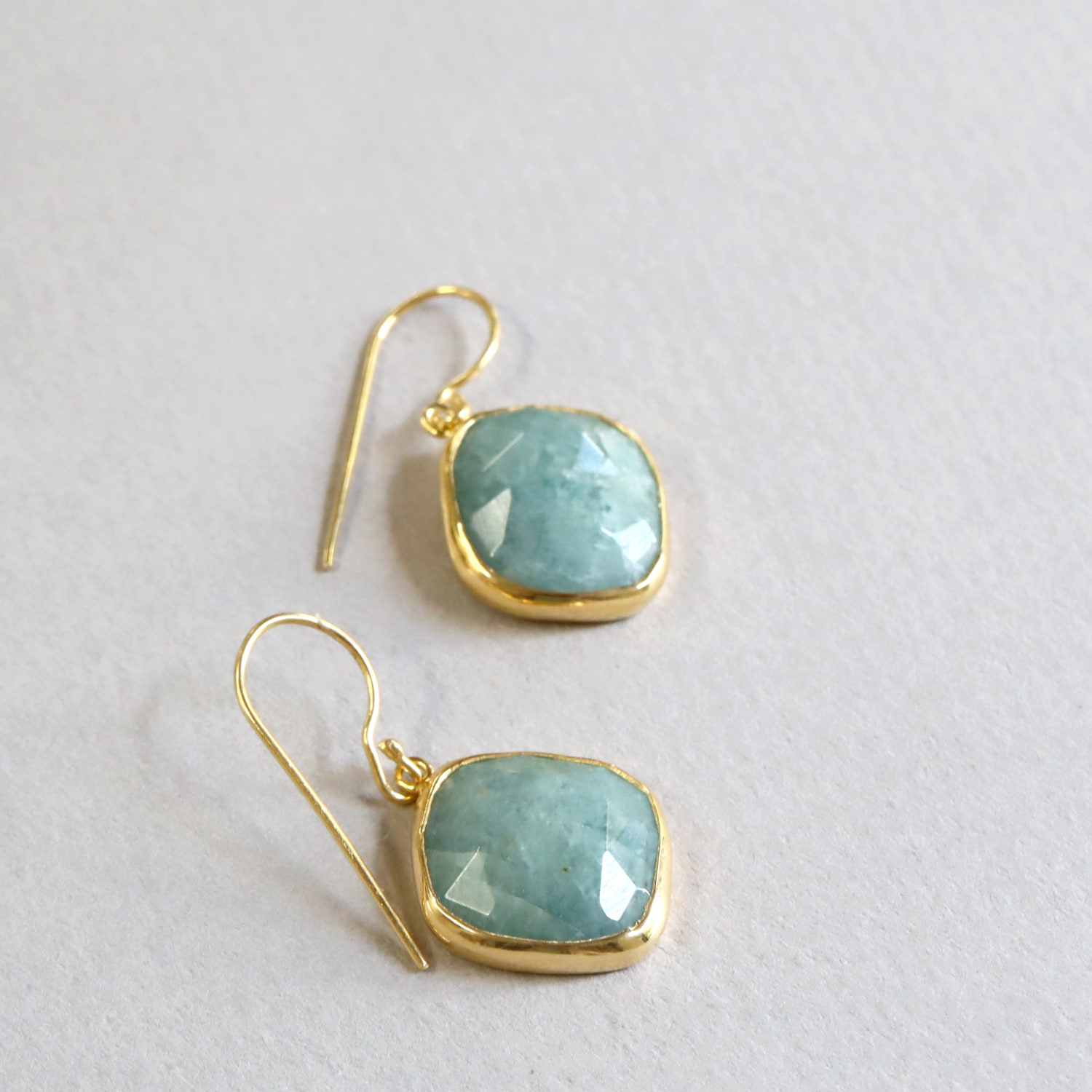 アクアマリン スクエア シルバーピアス ミルキーアクアマリン トルコジュエリー 色石 シルバー925(18kgf) 天然石 ラフカット