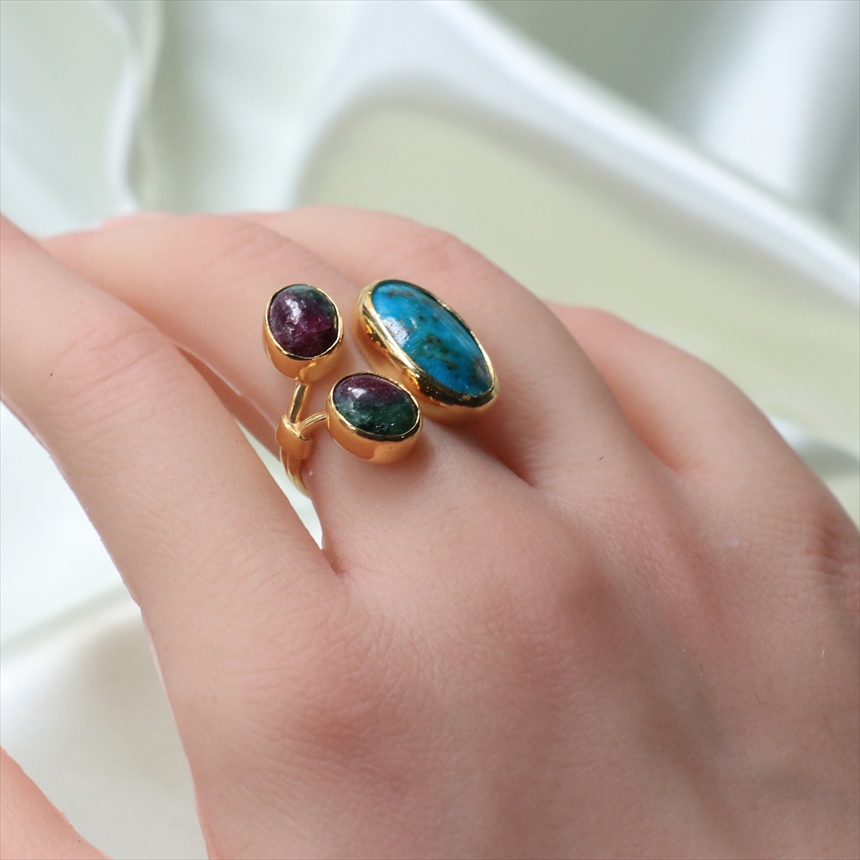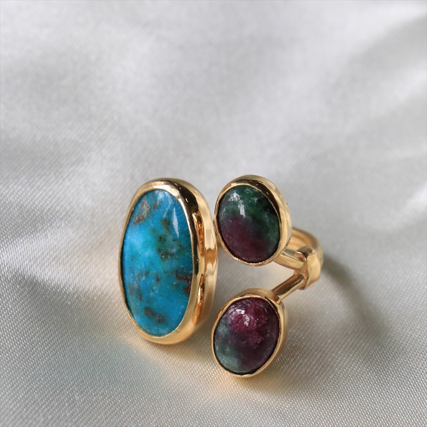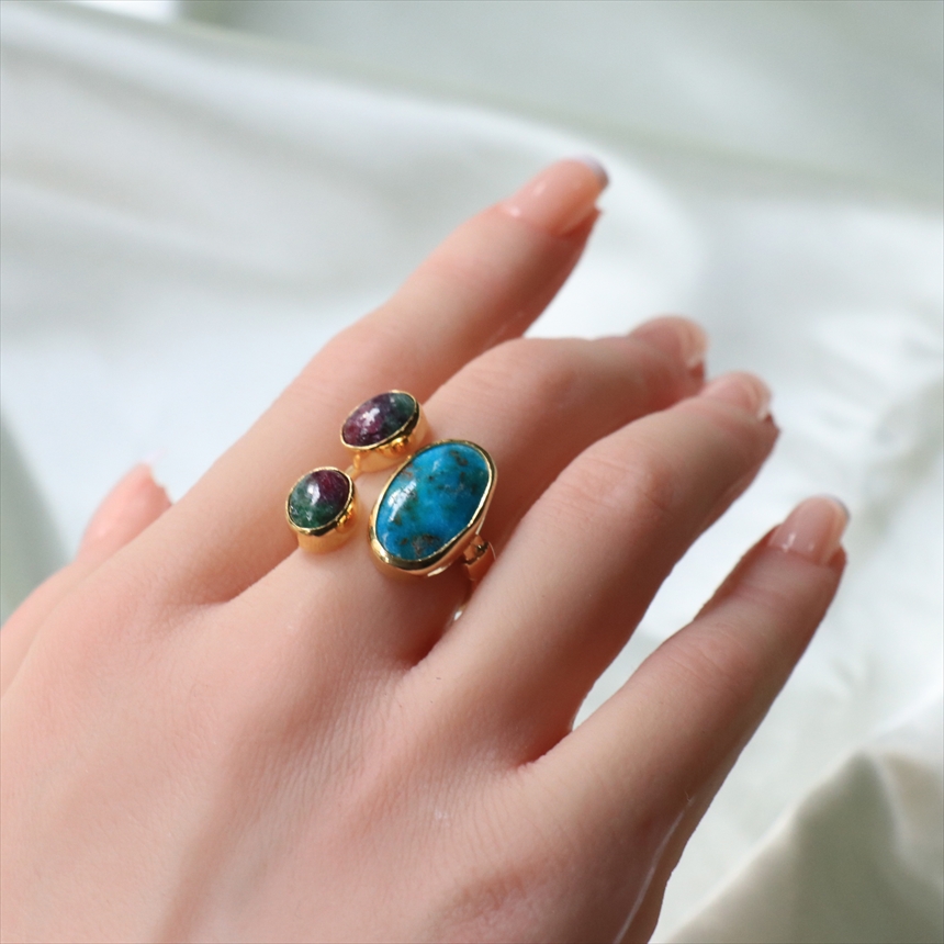 Key:Turkish Jewelry, Color stone,イスタンブールジュエリー, トルコジュエリー, シルバージュエリー,ゴールドコーティング,上質, 天然石,リング,ひと粒,ガラタバザール,ハンドメイド,カラーストーン,きれいめ,大人女子,一点物,色石,輸入雑貨,トルコ,ニュアンスカラー,プレゼント,ターコイズ,3粒