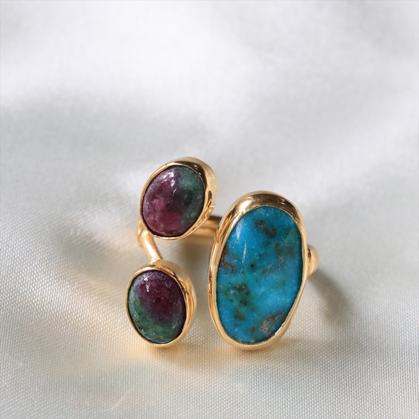 ターコイズ×ルビーインゾイサイト シルバーリング 18KGF 天然石 指輪 三つのストーン