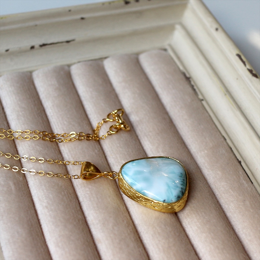 ラリマー ペンダント 22KGP カボション ラフカット アルサメイア 天然石一粒ネックレス トルコジュエリー